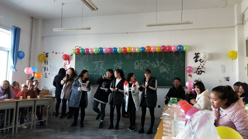 聯(lián)誼晚會上每個班級都表演了獨具特色的節(jié)目。晚會的氣氛首先被歌舞《光輝歲月》激情點燃,緊接著小品《青春校園》、話劇《皇帝與刺客》以及歌舞《阿拉伯之夜》、《Big bang》等各類型節(jié)目輪番登場,贏得大家陣陣掌聲。同時在晚會期間穿插著各種游戲,恰如其分的將晚會帶向一個又一個高潮。晚會在溫馨歡快的旋律中走向尾聲,最后晚會在學(xué)生會成員合唱的《朋友》的動聽歌聲中結(jié)束。
