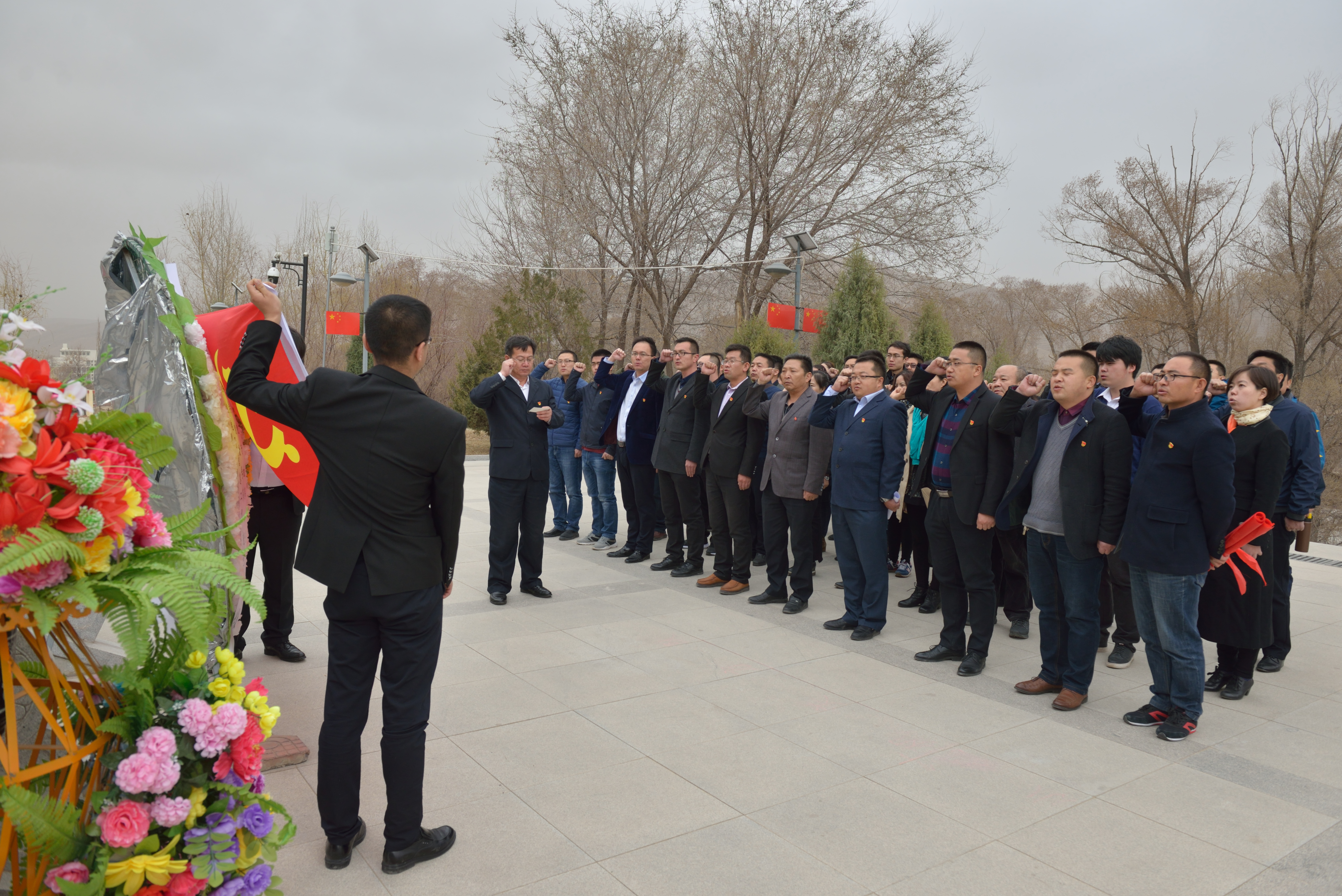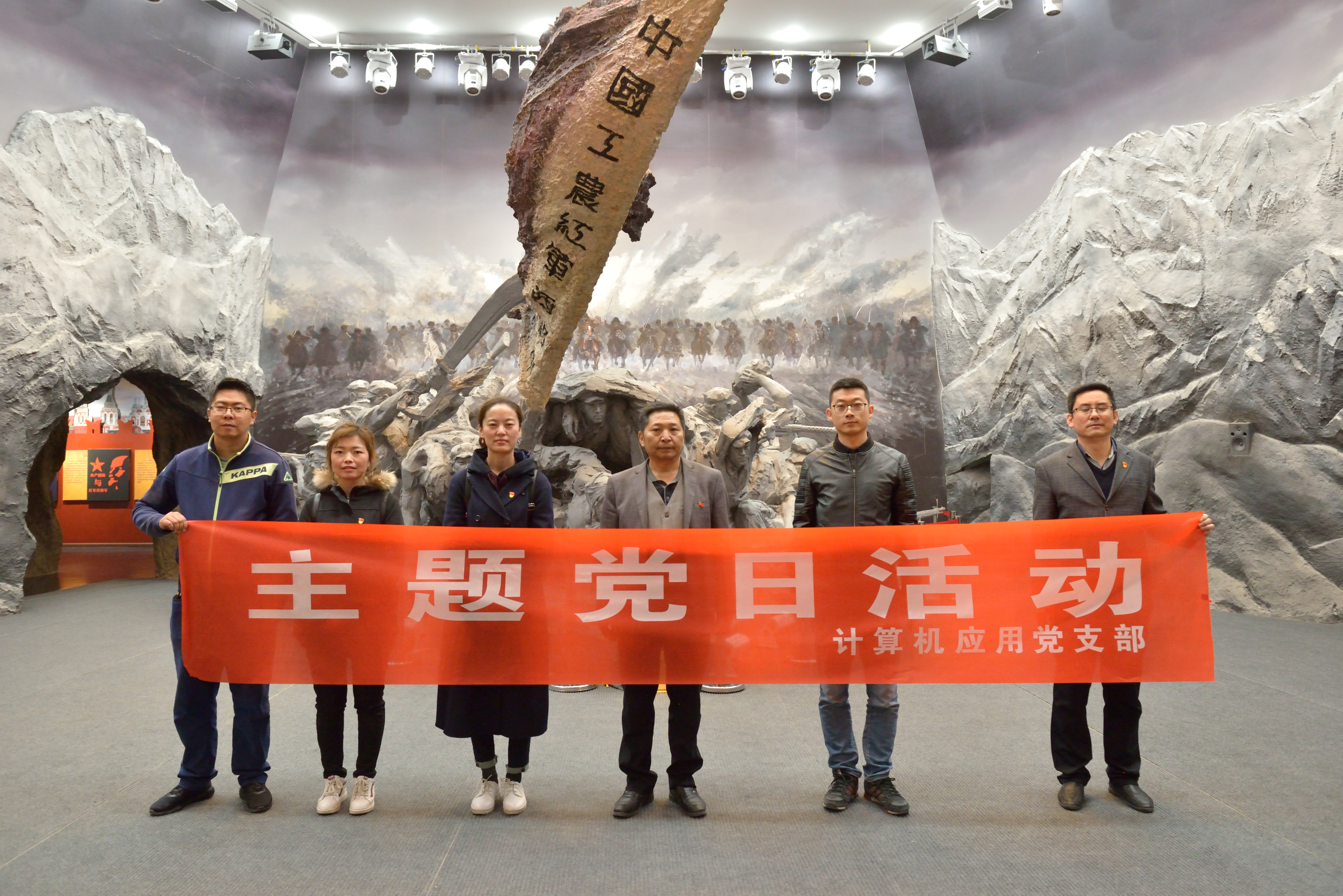 ? ? 4月4日下午,清明節(jié)來臨之際,為讓廣大黨員干部緬懷革命先烈,聆聽英雄事跡,重溫入黨誓詞,身臨其境的接受一次愛國主義教育,計算機應用黨支部、電子及網絡黨支部組織全體黨員赴古浪戰(zhàn)役紀念館,深入開展了紅色教育主題活動。在鮮紅的黨旗前,黨員同志莊嚴舉起右拳,再一次重溫那段刻骨銘心的入黨誓言。