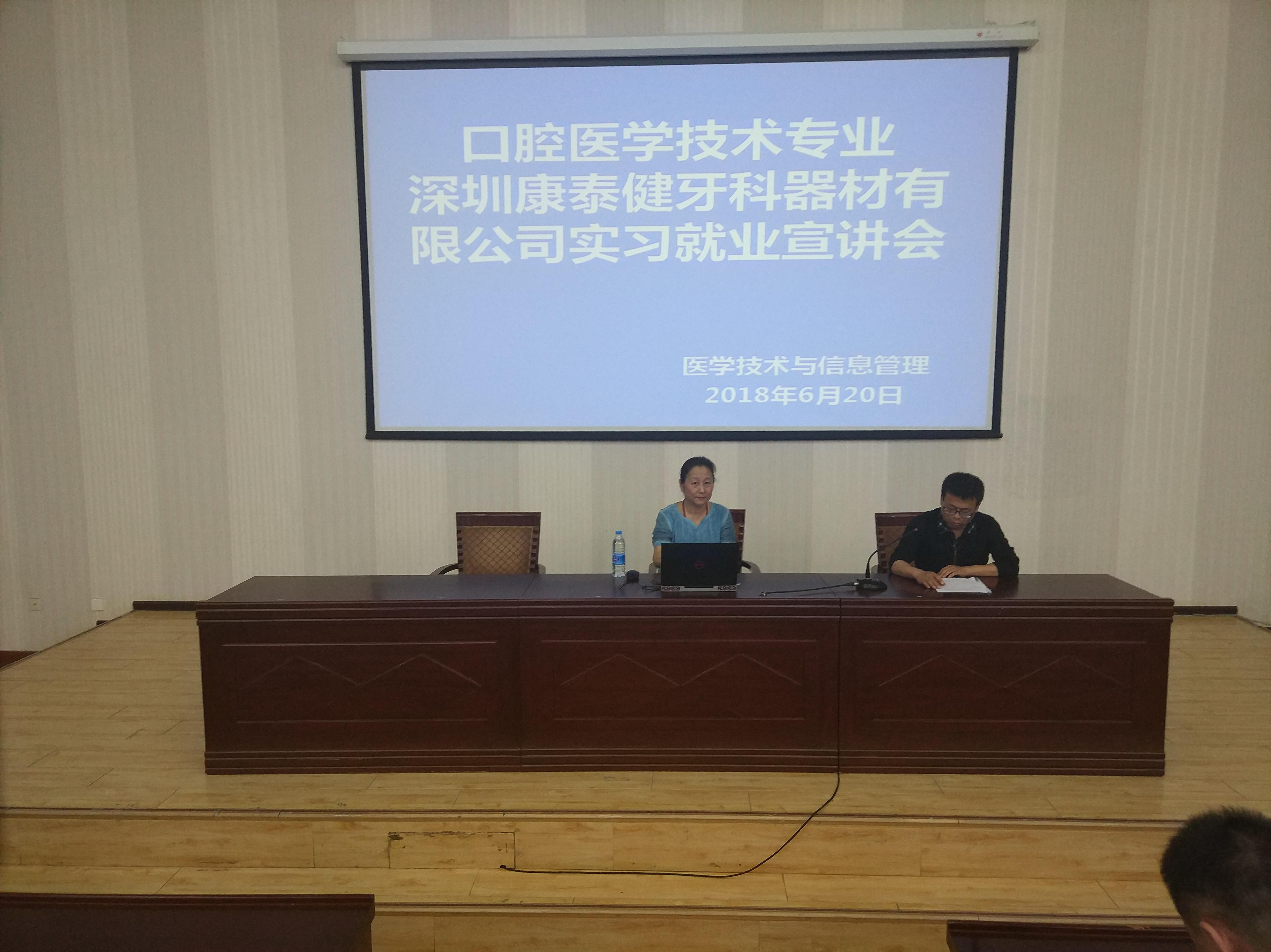 6月20日,醫(yī)學技術與信息管理系邀請深圳市康泰健牙科器材有限公司在正德廳召開企業(yè)實習就業(yè)宣講。參加宣講會的有康泰健牙科器材有限公司培訓學校校長辛金紅,口腔技術專業(yè)教研室全體老師,在??谇会t(yī)學技術專業(yè)學生。宣講會由系副主任蔡濟眾主持。