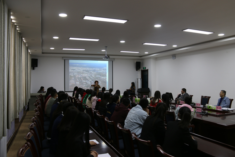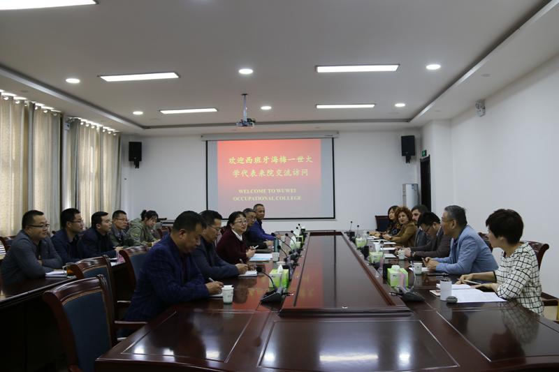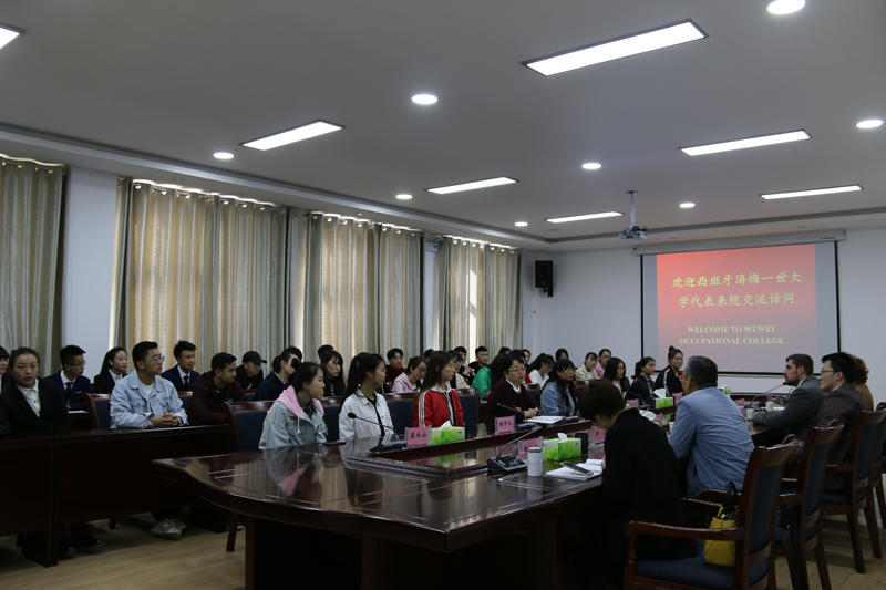 座談會上,田迎春代表全院師生對海梅一世大學到訪學院表示歡迎,對省國際交流與合作服務中心對學院的關心表示感謝,并向來訪客人簡要介紹了武威文化歷史、學院建設發(fā)展情況、學院國際交流與合作開展情況。來訪客人對學院近年來的巨大發(fā)展表示贊賞,對學院國際交流與合作開展工作表示肯定。Ana女士通過PPT展示介紹了海梅一世大學,希望雙方進一步進行合作。賓主雙方還就校際交流、語言培訓、赴西班牙專升碩留學項目等共同關心的問題進行了深入交流。