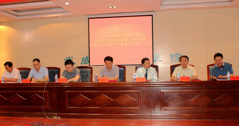 由甘肅省醫(yī)學(xué)會(huì)運(yùn)動(dòng)醫(yī)學(xué)專業(yè)委員會(huì)主辦,學(xué)院直屬附屬醫(yī)院承辦的“2018年甘肅省運(yùn)動(dòng)醫(yī)學(xué)基礎(chǔ)與臨床技術(shù)巡講暨武威市運(yùn)動(dòng)醫(yī)學(xué)專業(yè)委員會(huì)成立大會(huì)”于7月7日早上8點(diǎn)30分,在學(xué)院直屬附屬醫(yī)院內(nèi)科七樓會(huì)議大廳隆重舉行。
