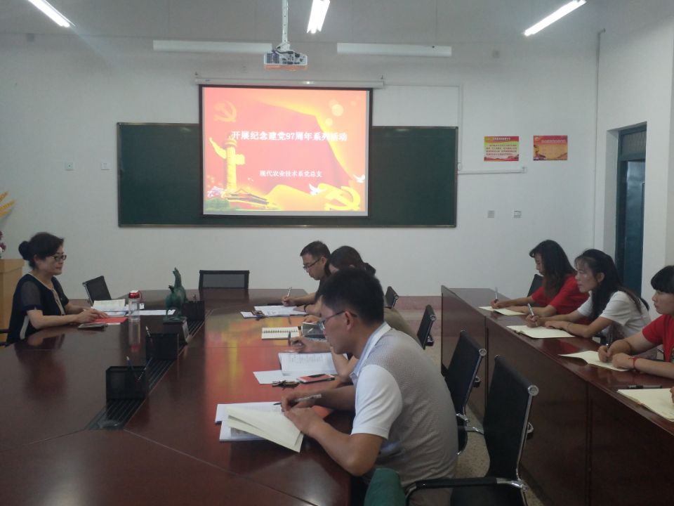 建黨97周年之際,現(xiàn)代農(nóng)業(yè)技術(shù)系黨總支為深入貫徹落實(shí)習(xí)近平新時(shí)代中國特色社會(huì)主義思想和黨的十九大精神,推進(jìn)“兩學(xué)一做”學(xué)習(xí)教育常態(tài)化制度化,組織全體黨員教師開展了主題黨日、集中學(xué)習(xí)研討、重溫入黨誓詞、專題黨課、黨員志愿服務(wù)等紀(jì)念建黨97周年系列活動(dòng)。
