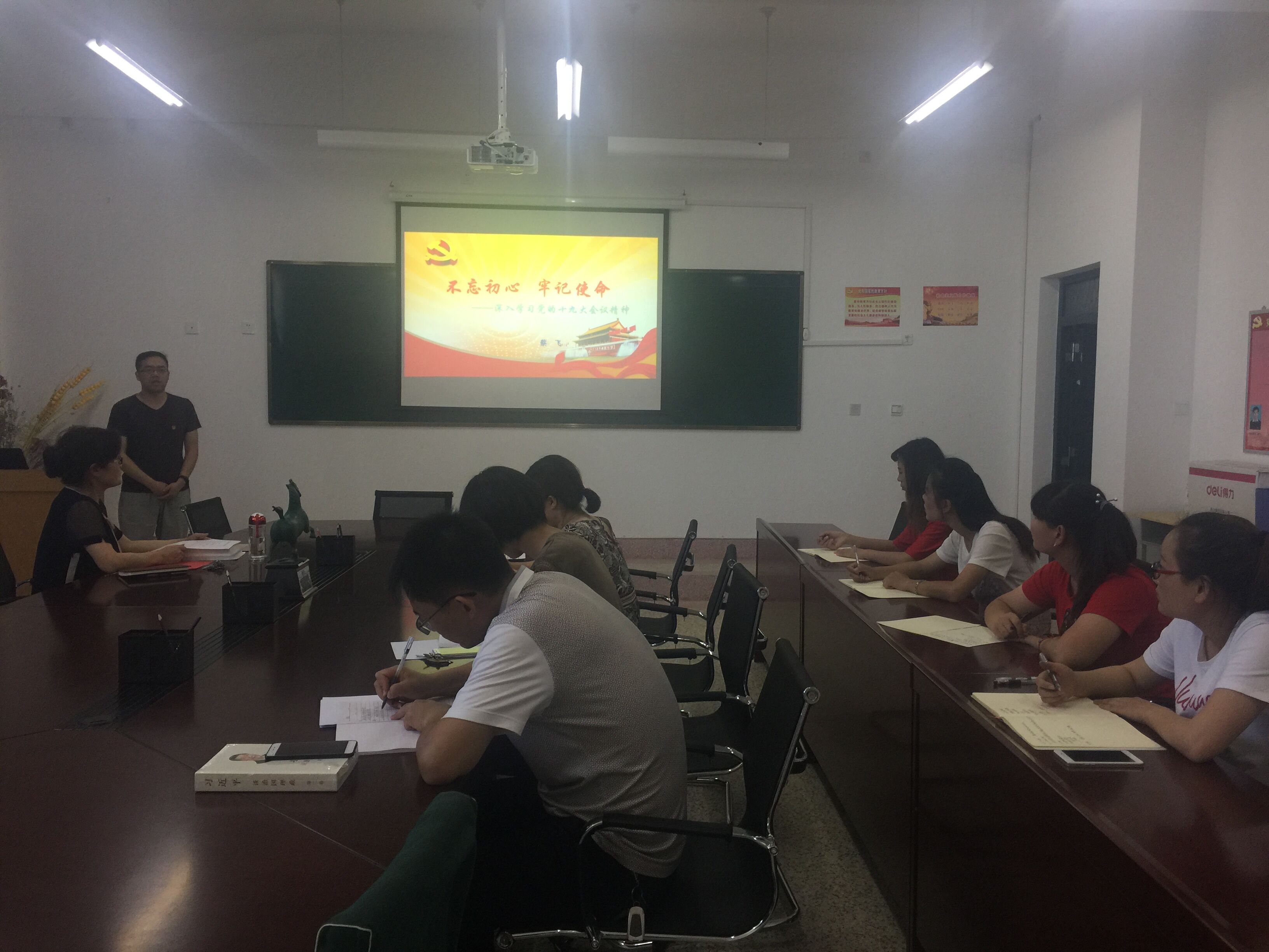食品專業(yè)黨支部書記蔡飛同志講了題為 “不忘初心 牢記使命——深入學(xué)習(xí)黨的十九大會(huì)議精神”的黨課。他主要通過十九大會(huì)議的基本情況、重要意義和主題;十九大報(bào)告的主要內(nèi)容;十九大報(bào)告的重要論斷和亮點(diǎn),帶領(lǐng)全系黨員再一次深入學(xué)習(xí)了十九大精神。