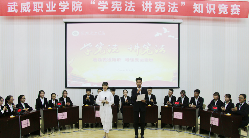9月12日晚,院學(xué)生會在正德廳舉辦“學(xué)憲法、講憲法”知識競賽,組織人事處副處長魏全民、宣傳統(tǒng)戰(zhàn)部副部長史子新、院團委副書記高鵬堂及200多名學(xué)生代表觀看了比賽。