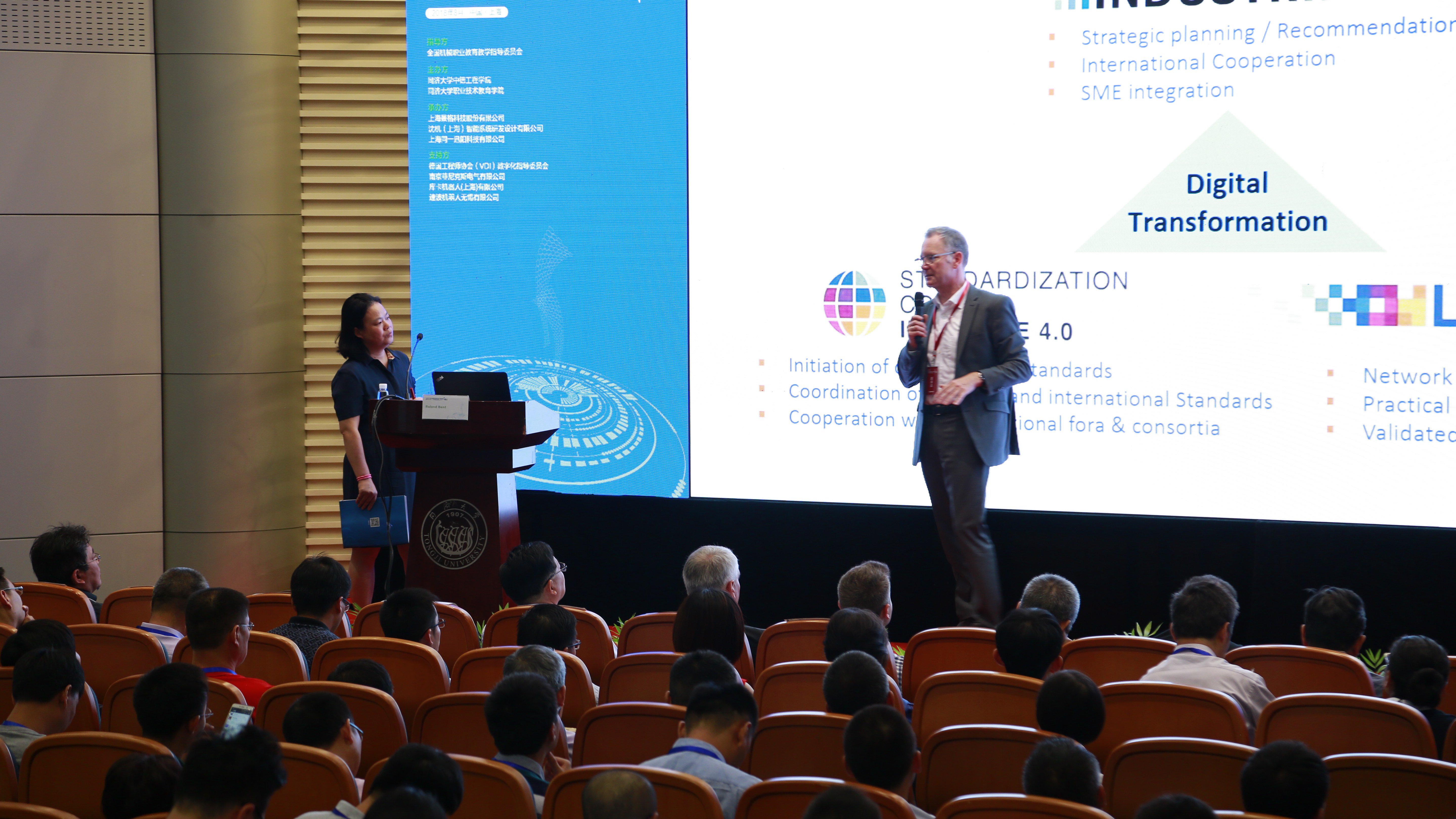 ??? 德國工業(yè)4.0標(biāo)準(zhǔn)制定委員會主席Roland Bent,對德國工業(yè)4.0標(biāo)準(zhǔn)的新發(fā)展進(jìn)行分享,為與會者提供了極具思想開放和思維拓展的窗口,以及智能制造產(chǎn)教融合的理論實(shí)踐依據(jù)。德國工程師協(xié)會教授Christian-Andreas Schumann論述了在全球化和數(shù)字化背景下教育領(lǐng)域網(wǎng)絡(luò)化協(xié)作的重要性,其研究領(lǐng)域的專業(yè)度和內(nèi)容的豐富性令與會者大呼痛快。