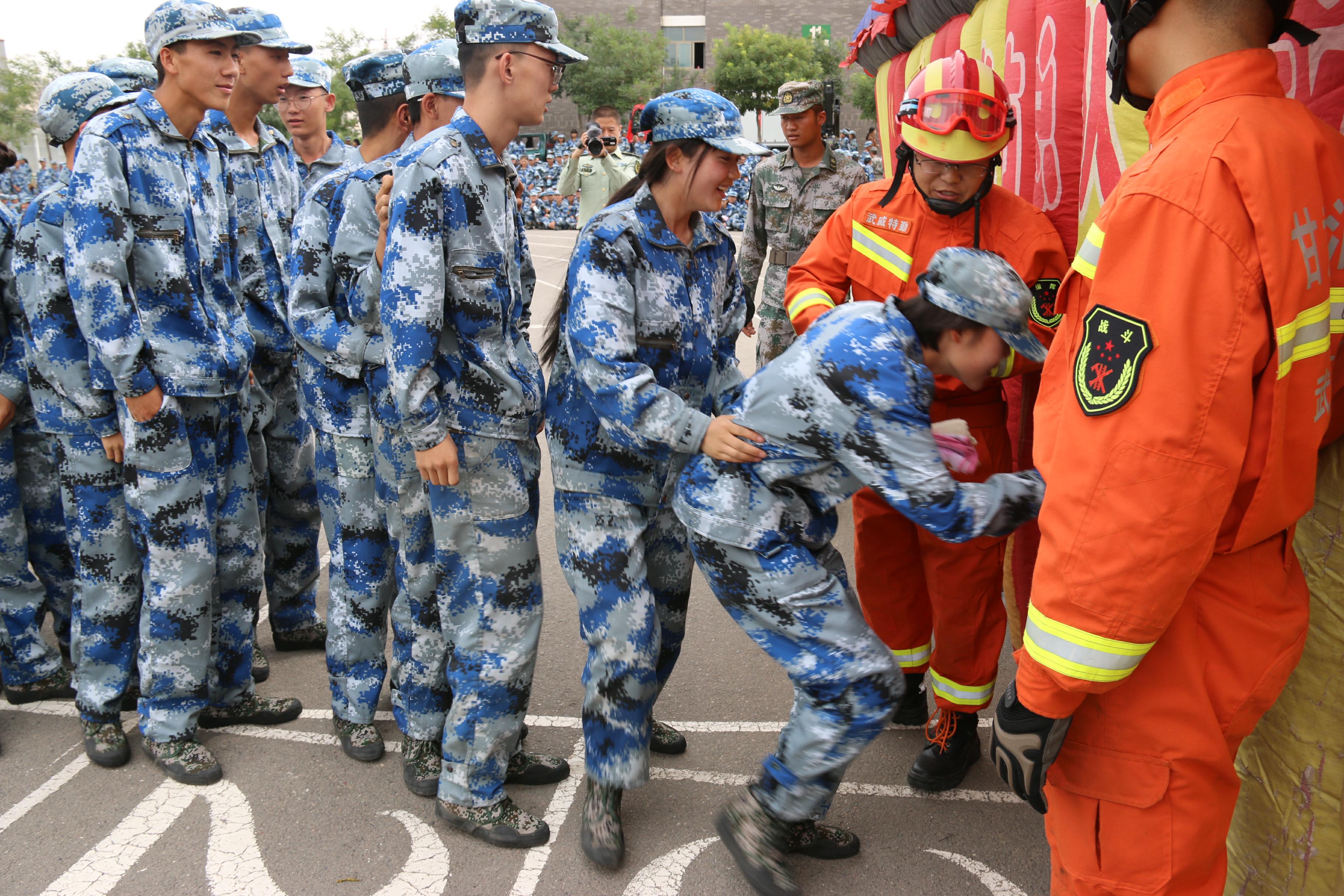 隨后,所有參演學(xué)生整隊(duì)到操場參加了滅火演練。在消防官兵的講解和和示范下,同學(xué)們體驗(yàn)了處置著火液化氣瓶、干粉滅火器滅火、穿消防救生衣、通過模擬煙室等操作。