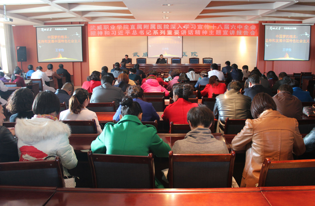 為深入學(xué)習(xí)宣傳貫徹黨的十八大精神,全面貫徹黨的教育方針,圍繞立德樹人根本任務(wù),深入開展中國特色社會主義宣傳教育。10月29日下午,醫(yī)院邀請?zhí)m州大學(xué)教授、博士生導(dǎo)師王學(xué)儉來我院進行“深入學(xué)習(xí)宣傳十八屆六中學(xué)會精神和習(xí)近平總書記系列重要講話精神主題宣講報告會”,院領(lǐng)導(dǎo)、中層干部和全體黨員在內(nèi)科樓七樓會議室認(rèn)真聽取了報告。