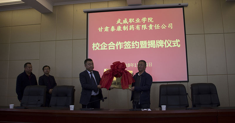 為提高人才培養(yǎng)質(zhì)量和辦學(xué)水平,加強(qiáng)校企協(xié)同育人機(jī)制建設(shè),11月1日下午,藥學(xué)系與甘肅泰康制藥有限責(zé)任公司校企合作共建“就業(yè)實(shí)習(xí)基地”簽約揭牌儀式在行樹樓北側(cè)會議室隆重舉行。甘肅泰康制藥有限責(zé)任公司投資方—北京久朝集團(tuán)產(chǎn)業(yè)中心總監(jiān)楊宏超、公司總工程師毛著鴻、財務(wù)總監(jiān)郝敏等企業(yè)領(lǐng)導(dǎo)出席本次儀式。學(xué)院教務(wù)處處長仲生仁、招生就業(yè)處處長蔡柱山、藥學(xué)系主任魏潤明、副主任楊建美、黨總支副書記單光年及藥學(xué)系160余名師生參加了此次簽約揭牌儀式。儀式由魏潤明主持。