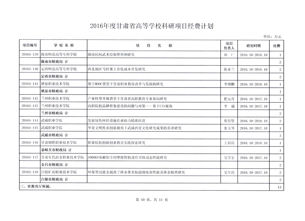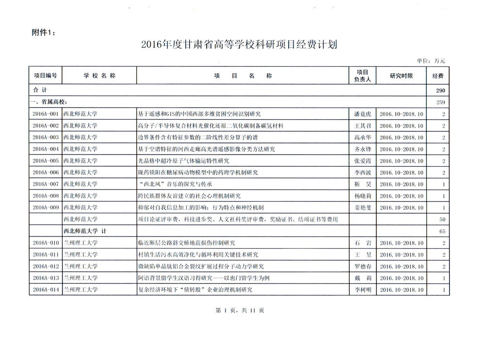 轉(zhuǎn)發(fā)甘肅省財(cái)政廳 教育廳文件 關(guān)于下達(dá)2016年度高校導(dǎo)師科研經(jīng)費(fèi)和“2011計(jì)劃”補(bǔ)助經(jīng)費(fèi)的通知