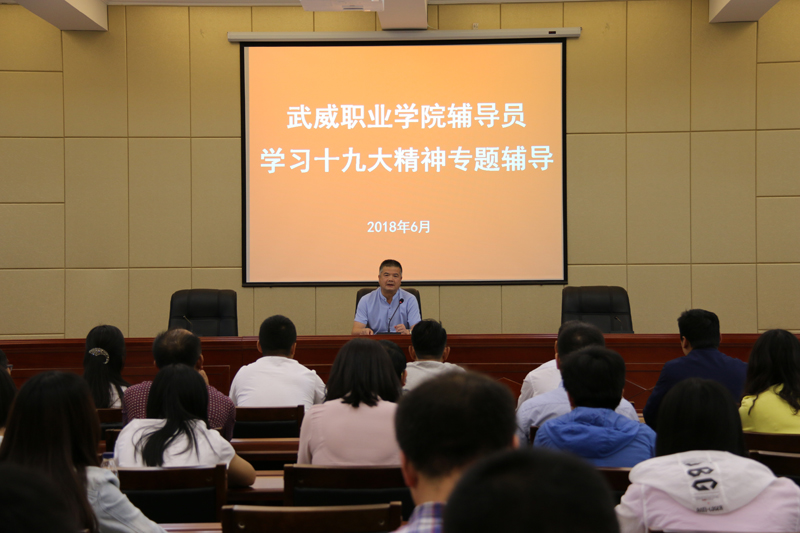 為學習貫徹十九大精神和習近平新時代中國特色社會主義思想,我院于6月4日下午在行樹樓學術(shù)報告廳組織召開學習十九大精神專題輔導會。各系輔導員、班主任、團干部以及學工干部50余人參加輔導會。學生工作處處長王守云做了“不忘初心、牢記使命,做新時代的‘四有’輔導員”專題輔導。