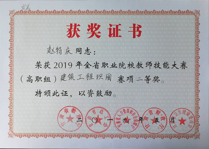我院建筑工程系教師在“2019年甘肅省職業(yè)院校教師技能大賽”中再創(chuàng)佳績(jī)