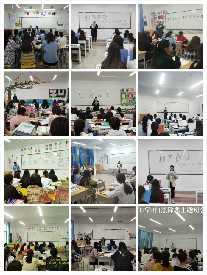 為進(jìn)一步優(yōu)化教育環(huán)境,打造平安和諧校園,配合學(xué)院深入開展“掃黑除惡”專項(xiàng)斗爭(zhēng),根據(jù)5月20日人文藝術(shù)教育系“掃黑除惡”專項(xiàng)斗爭(zhēng)工作會(huì)議的安排,定于5月20日至5月26日為我系“掃黑除惡”主題教育周。