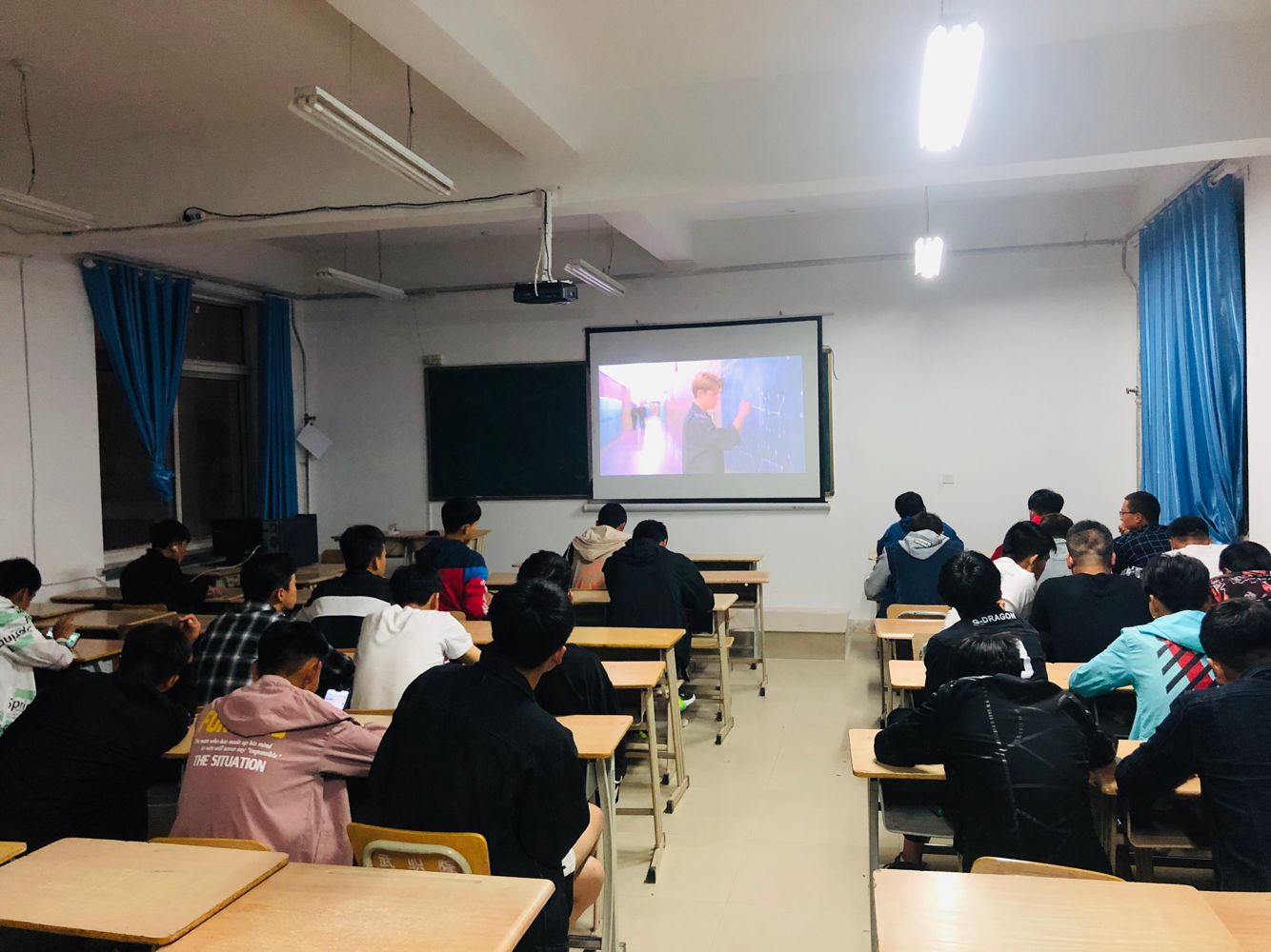 通過觀看教育影片《美麗心靈》,教育同學(xué)們?cè)诿鎸?duì)生活、學(xué)習(xí)中的各種困難挫折時(shí),迎難而上,樂觀面對(duì)。