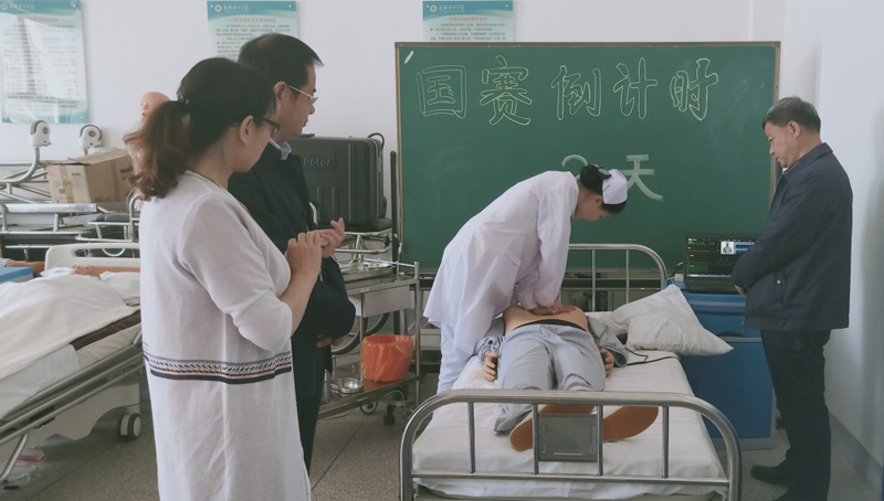 院領導高度重視此次比賽,全力支持大賽工作,時刻關注賽前訓練情況。學院黨委書記趙明、副院長翟存祥、教務處處長仲生仁多次到訓練現(xiàn)場觀看選手操作,并提出指導性的意見和建議。趙書記充分肯定了老師們的辛勤付出,要求輔導教師在訓練中一定要堅持高標準、嚴要求;鼓勵選手發(fā)揮潛能,賽出水平,實現(xiàn)新的突破。護理系成立了以黨總支書記張建輝、系主任韓曉萍牽頭,由專業(yè)教師組成大賽輔導小組,認真解讀競賽規(guī)程,周密安排訓練計劃,強化理論知識,細化操作項目,力爭在此次大賽中取得好成績。