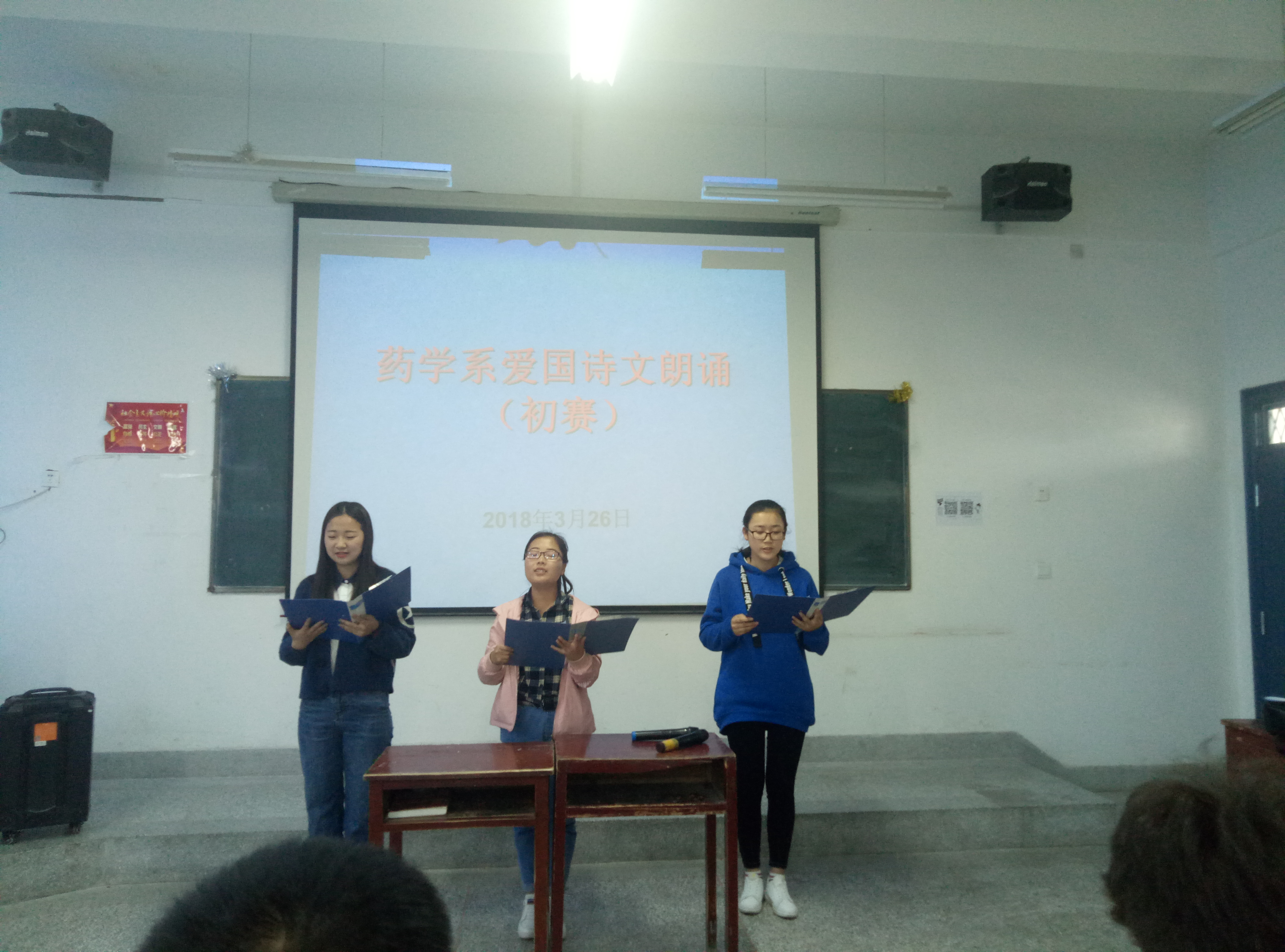為深入學(xué)習(xí)貫徹習(xí)近平新時(shí)代中國特色社會主義思想和黨的十九大精神,鼓勵(lì)當(dāng)代大學(xué)生通過朗誦愛國詩文,感受中華經(jīng)典文化,塑造民族精神,展現(xiàn)新時(shí)期大學(xué)生精神風(fēng)貌,藥學(xué)系團(tuán)總支在系黨總支的安排和學(xué)院團(tuán)委的指導(dǎo)下,于3月26日在明遠(yuǎn)樓524教室舉辦了“我的中國夢”經(jīng)典愛國詩文朗誦比賽。藥學(xué)系16級、17級各班學(xué)生代表參加了此次朗誦比賽。
