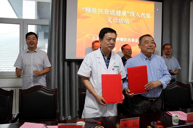 陳鋼與閻桐共同簽訂捐贈(zèng)10萬元腫瘤防治基金協(xié)議。該基金用于資助武威貧困腫瘤患者康復(fù)治療使用。