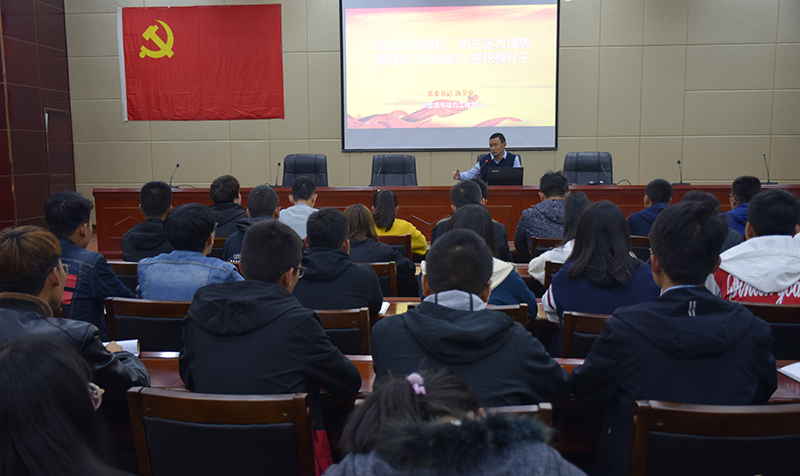 開(kāi)班典禮結(jié)束后,羅小勇同志以“學(xué)習(xí)貫徹新黨章,做習(xí)近平新時(shí)代中國(guó)特色社會(huì)在主義思想的踐行者”為題講授了開(kāi)班的第一課;馬天琳以“中國(guó)共產(chǎn)黨的指導(dǎo)思想”為題講授了第二課。當(dāng)晚,學(xué)院黨委書(shū)記湯旻安同志以“端正入黨動(dòng)機(jī),樹(shù)立遠(yuǎn)大理想,做新時(shí)代合格的入黨積極分子”為題講授了第三課。