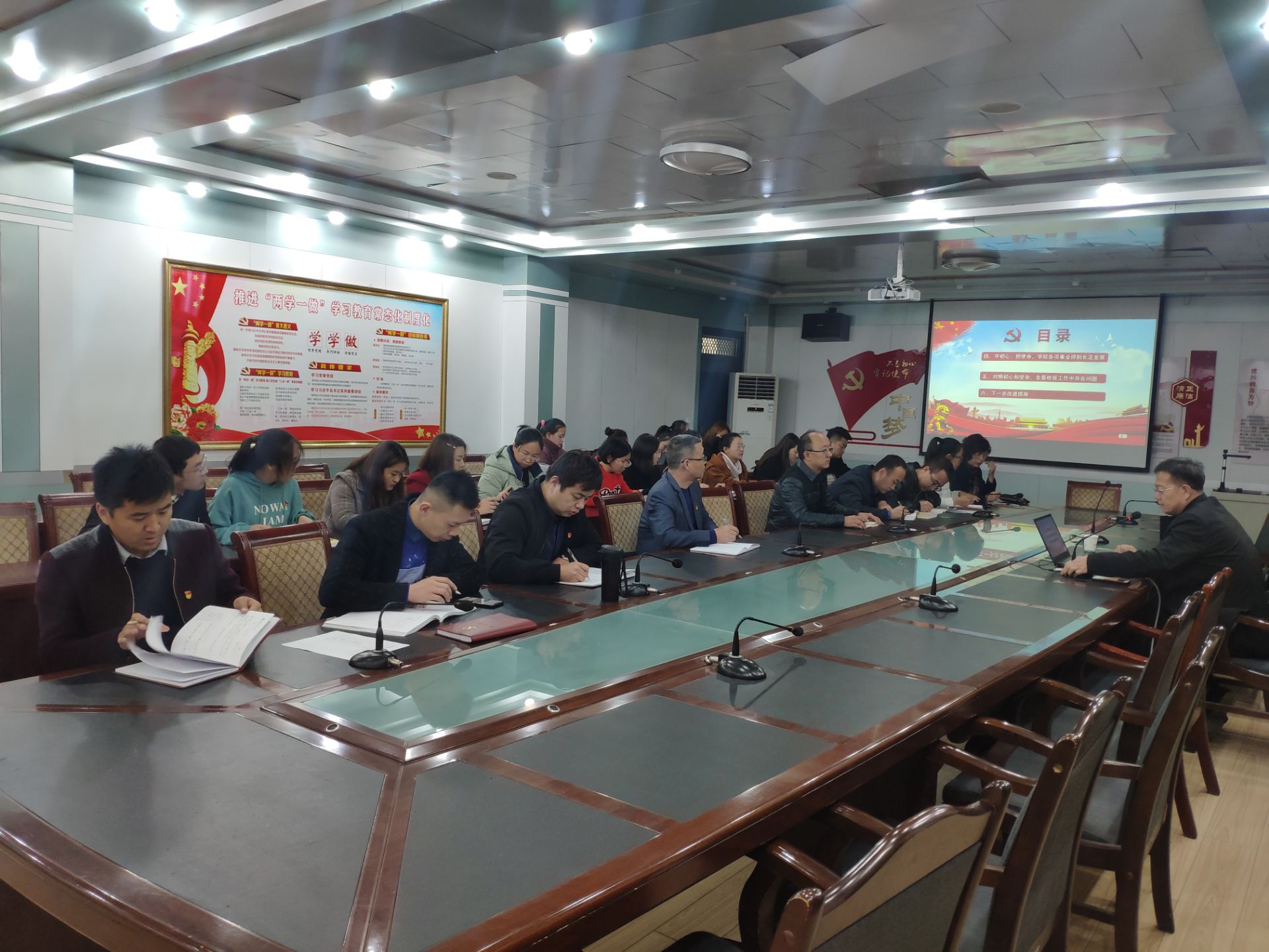 張開禮從“深刻認(rèn)識’不忘初心、牢記使命’主題教育的重大意義”、“強(qiáng)化理論武裝,進(jìn)一步深入學(xué)習(xí)貫徹習(xí)近平新時代中國特色社會主義”、“以習(xí)近平新時代中國特色社會主義思想為指導(dǎo),努力辦好人民滿意的高職教育”“守初心、擔(dān)使命,學(xué)院各項事業(yè)得到長促發(fā)展”、“對照初心和使命,全面檢視工作中存在的問題”等五個方面,為全體與會黨員進(jìn)行了詳細(xì)的輔導(dǎo)講解。