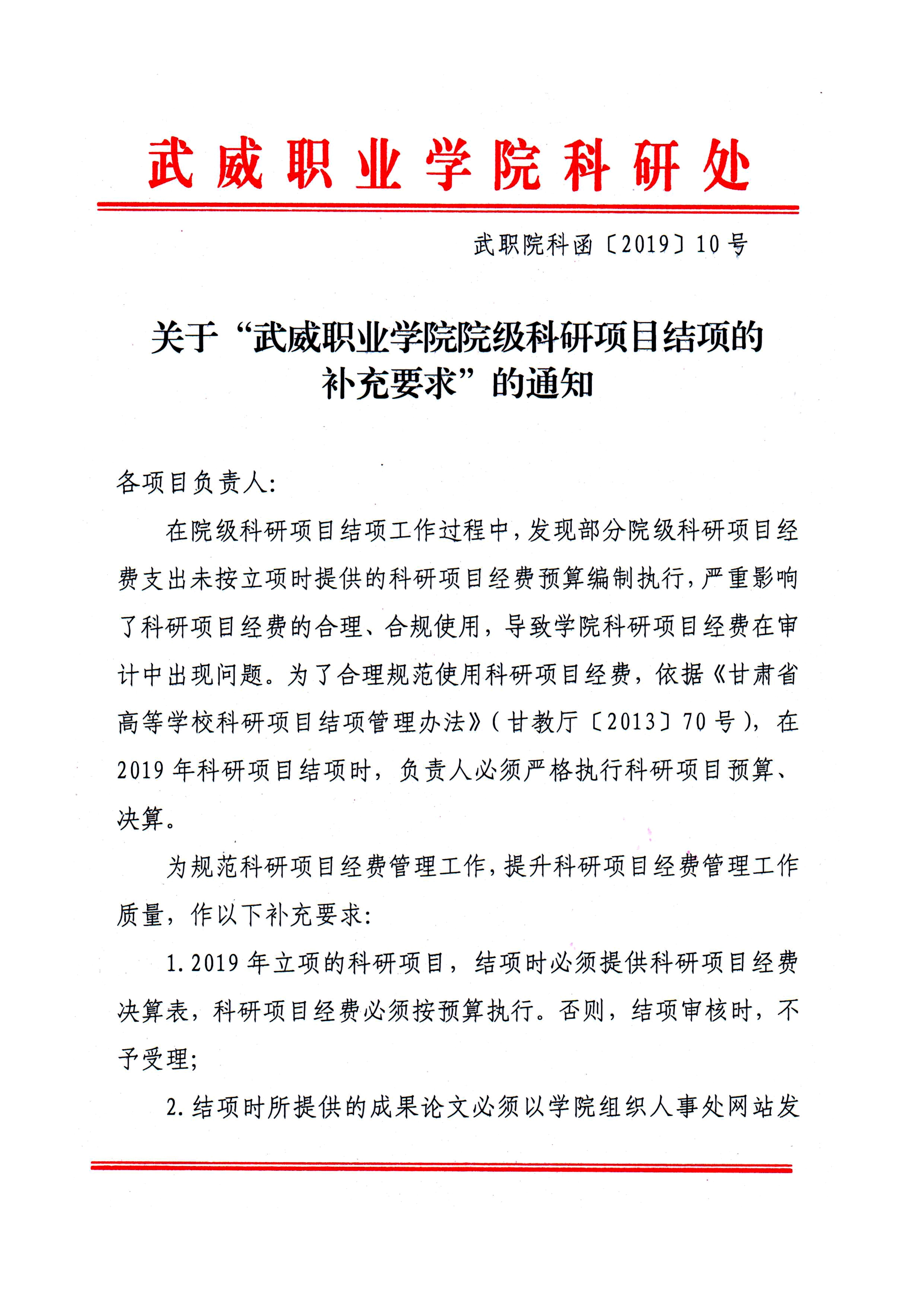 關(guān)于“武威職業(yè)學(xué)院院級科研項目結(jié)項的補充要求”的通知