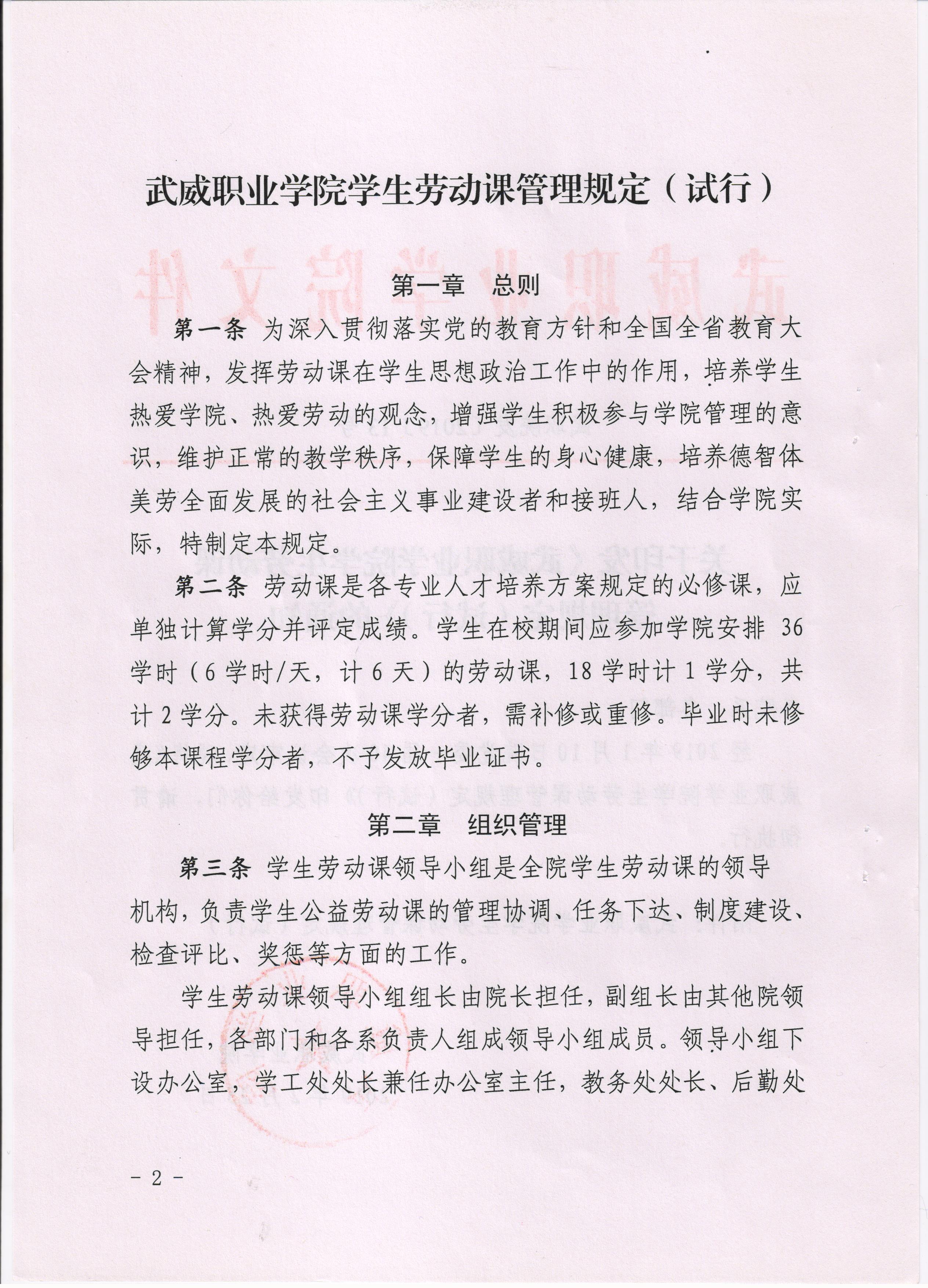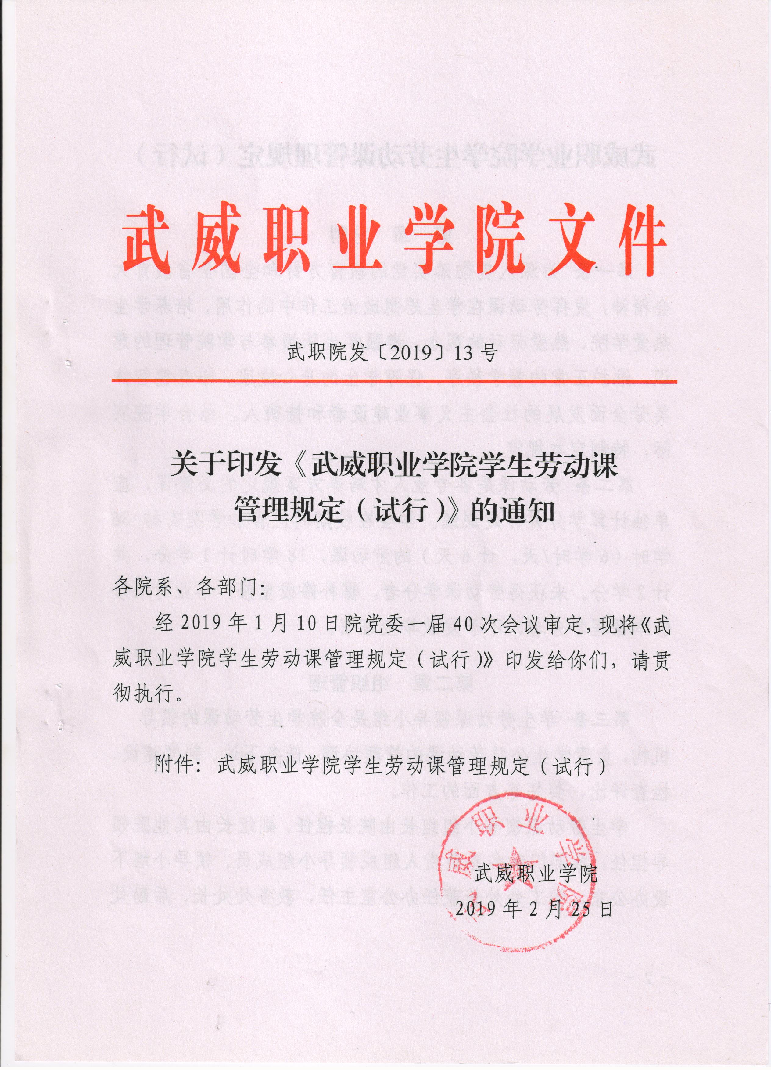 武威職業(yè)學(xué)院學(xué)生勞動(dòng)課管理規(guī)定(試行)的通知