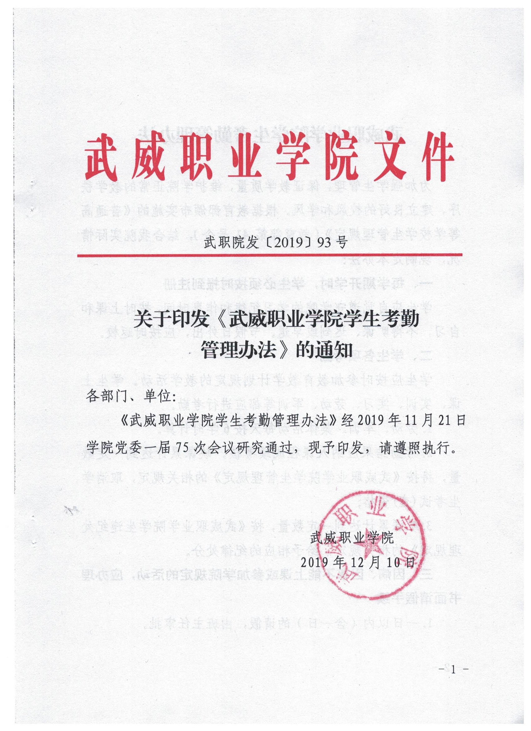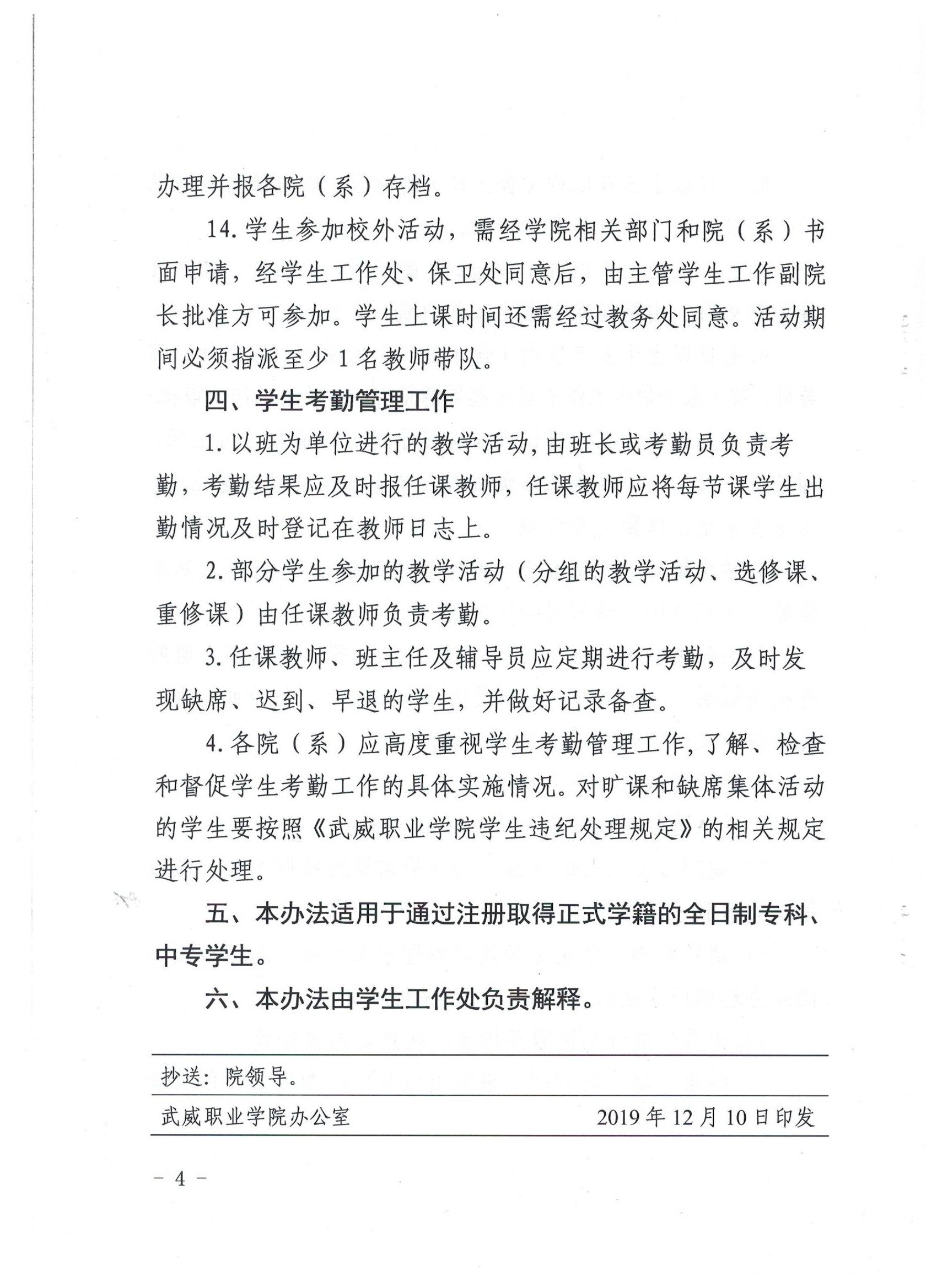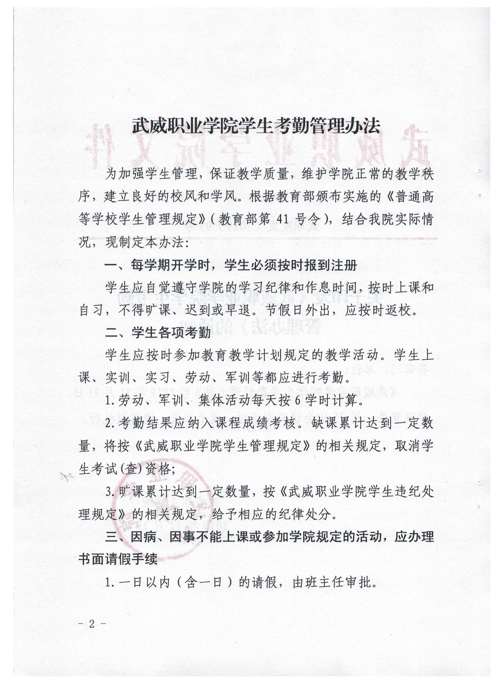 武威職業(yè)學(xué)院學(xué)生考勤管理辦法