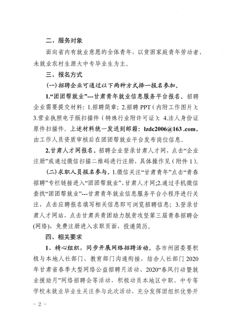 關(guān)于組織開展甘肅共青團(tuán)助力脫貧攻堅(jiān)第三屆青春招聘會(網(wǎng)絡(luò))活動的通知