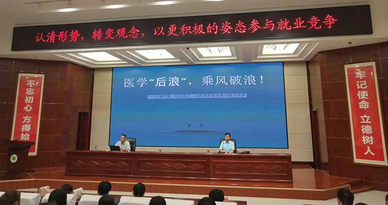 7月12日晚,護理系在大學生活動中心菁英廳、明遠樓211、213、311等四個會場舉辦“護理系2021屆畢業(yè)生就業(yè)指導講座”,邀請學院招生就業(yè)處副處長董鵬同志作“醫(yī)學后浪、乘風破浪”為主題的專題講座。護理系黨總支書記張建輝主持講座,護理系2021屆畢業(yè)班班主任、全體輔導員及2021屆全體畢業(yè)生共計647人參加講座。