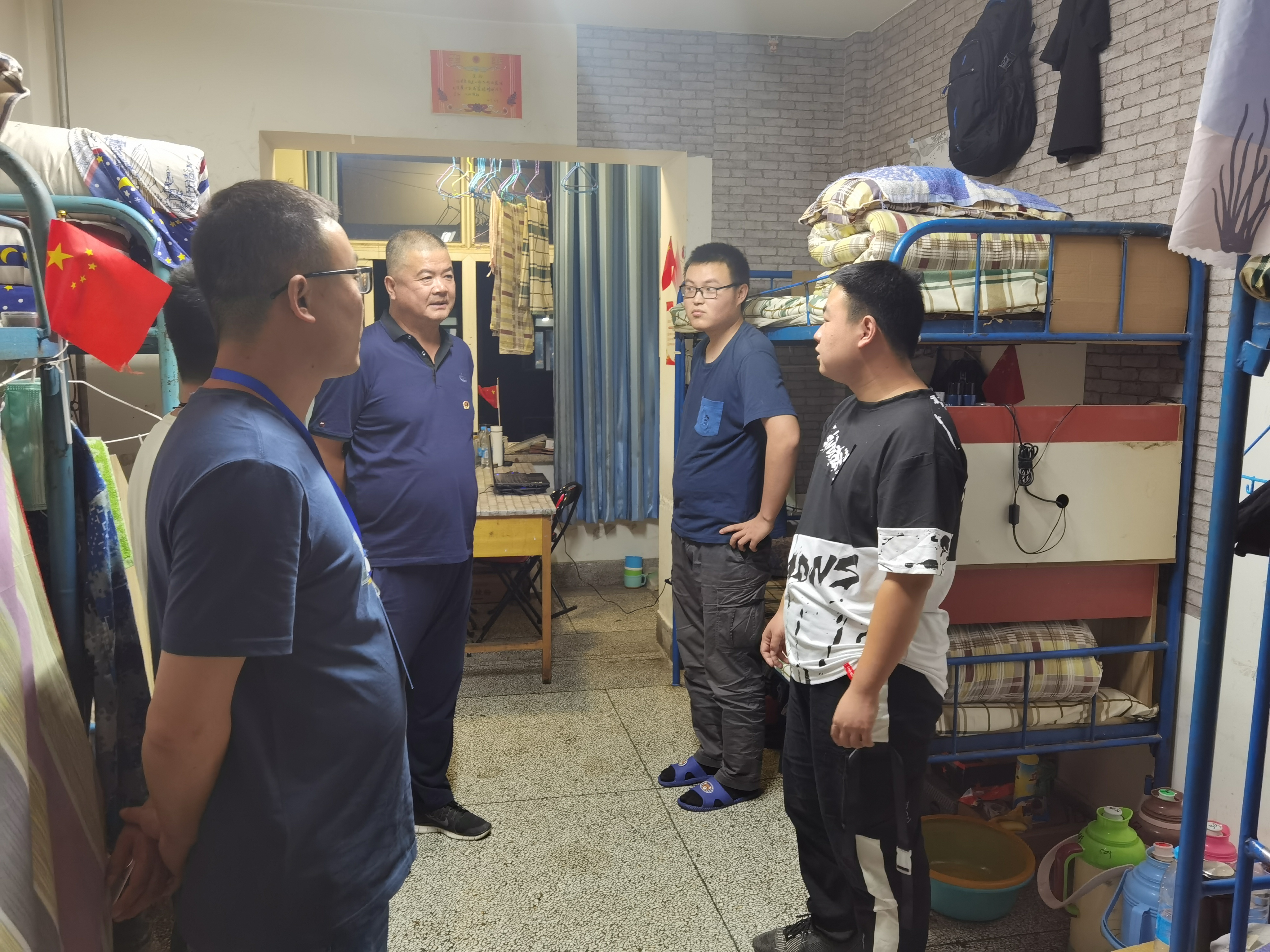 ? 6月26日晚,學院副院長王守云,保衛(wèi)處處長王政,學工處副處長高鵬堂,教師姚斌一行深入我系學生宿舍,實地視察和慰問我系返校學生生活狀態(tài)。