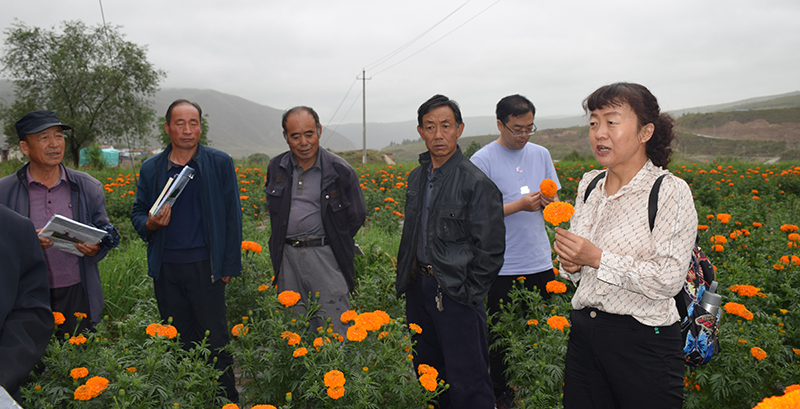 座談會(huì)結(jié)束后,銀春花副教授做了題為“花?;ɑ苓x擇”的專題講座,就花海品種的選擇及種植養(yǎng)護(hù)的關(guān)鍵問題做了詳細(xì)的講解,參加培訓(xùn)的人員紛紛表示,收獲頗豐,為今后黑松驛鎮(zhèn)的在美化環(huán)境,花海建設(shè)中提供了依據(jù)。銀春花還在花?,F(xiàn)場(chǎng)指導(dǎo)農(nóng)戶開展了花卉的田間管理及病蟲害防治。