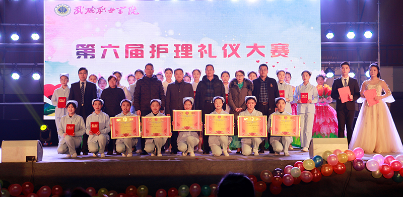 為傳承中華禮儀文明,弘揚(yáng)南丁格爾精神,強(qiáng)化學(xué)生護(hù)理專(zhuān)業(yè)技能,培養(yǎng)學(xué)生文明、端莊、仁愛(ài)的良好形象、助推我市精神文明建設(shè),12月20日,在體育館成功舉行了武威職業(yè)學(xué)院第六屆護(hù)理禮儀大賽,此次大賽的主題為“承醫(yī)傳德不忘初心、 展現(xiàn)護(hù)生禮儀風(fēng)采”。學(xué)院黨委書(shū)記、院長(zhǎng)趙明、副院長(zhǎng)王永緒及部分部門(mén)、系部負(fù)責(zé)人出席本次活動(dòng),護(hù)理系全體教師及1300多名學(xué)生觀看了本次比賽。