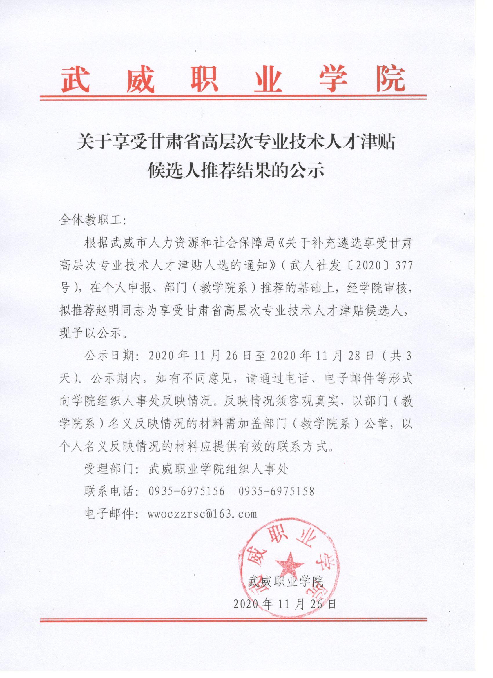武威職業(yè)學(xué)院關(guān)于2020年高校副教授、講師職稱(chēng)評(píng)審結(jié)果的公示