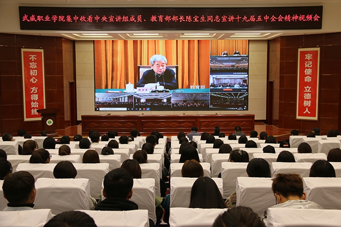 武威職業(yè)學(xué)院組織黨員干部和師生觀看教育部黨組書記、部長陳寶生宣講十九屆五中全會精神