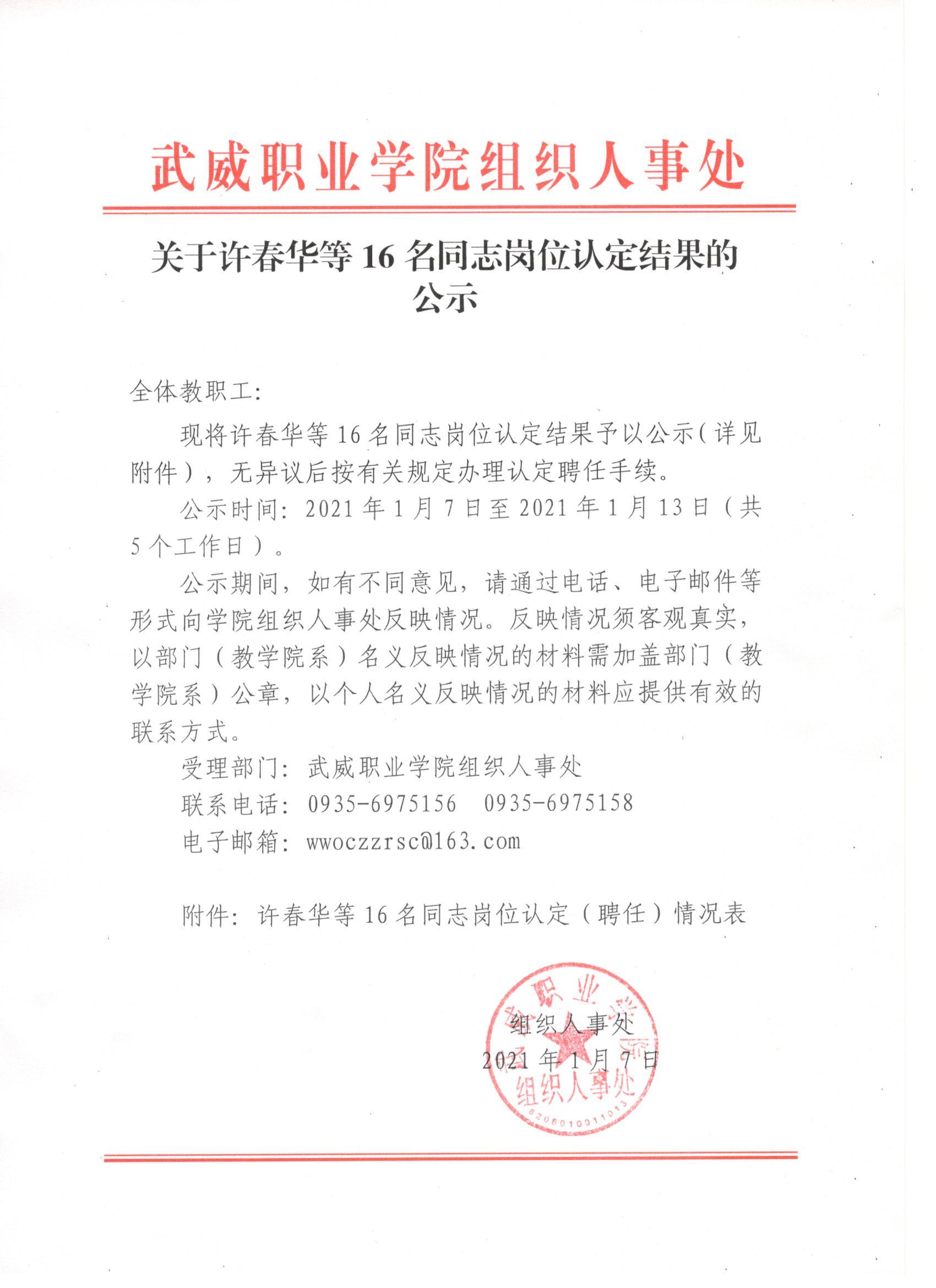 武威職業(yè)學院關于2020年高校副教授、講師職稱評審結果的公示