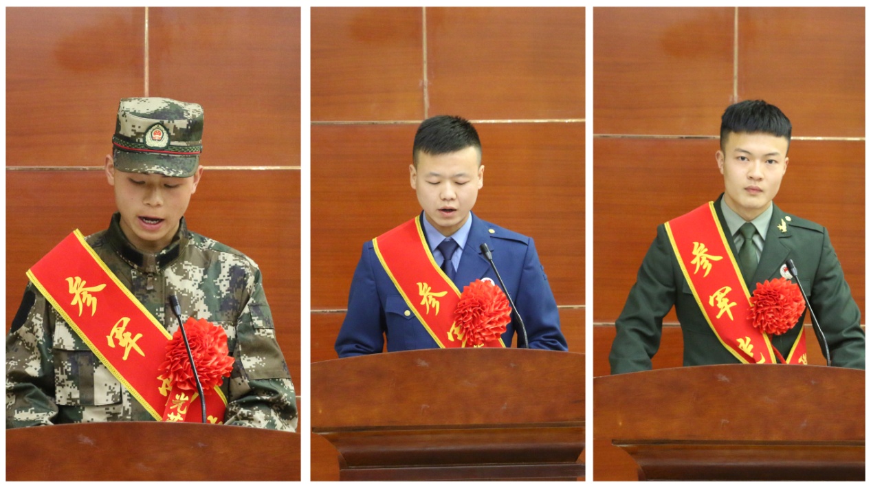 電子信息工程系學(xué)生王鴻代表學(xué)院入伍新兵發(fā)言,表示將不負母校培養(yǎng),傳承戍邊英雄精神,爭取在軍營中建功立業(yè),報效國家,展現(xiàn)武職學(xué)子良好的精神風(fēng)貌。
