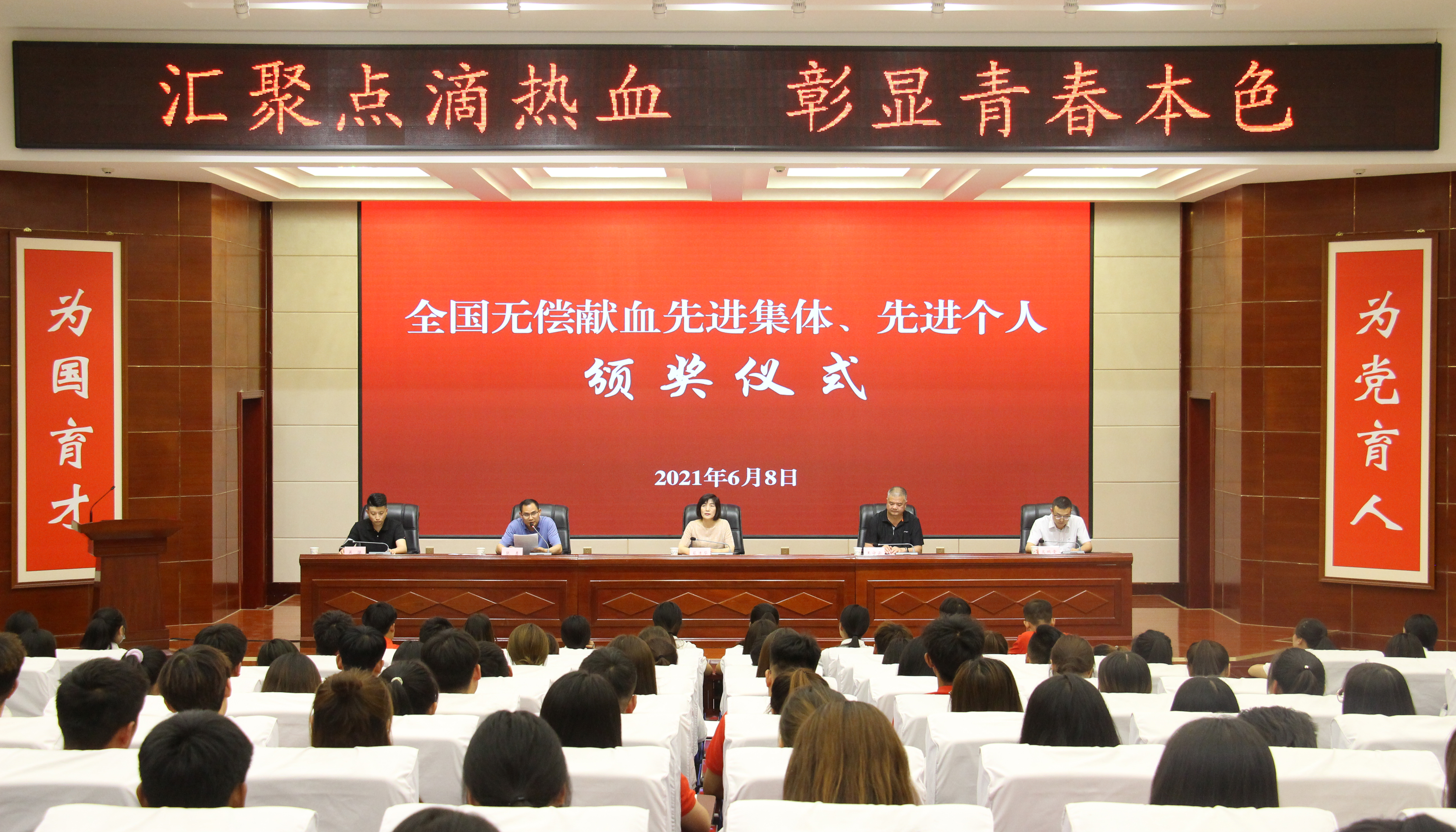 6月8日下午,武威市中心血站、武威市紅十字會(huì)在學(xué)院菁英廳召開全國(guó)無償獻(xiàn)血先進(jìn)集體、先進(jìn)個(gè)人頒獎(jiǎng)儀式。武威市中心血站站長(zhǎng)蔡清華,武威市紅十字會(huì)專職副會(huì)長(zhǎng)張勇,學(xué)院黨委委員、副院長(zhǎng)王守云出席頒獎(jiǎng)儀式,學(xué)院獻(xiàn)血志愿者代表220人參加活動(dòng)。儀式由學(xué)生工作處、院團(tuán)委負(fù)責(zé)人高鵬堂主持。