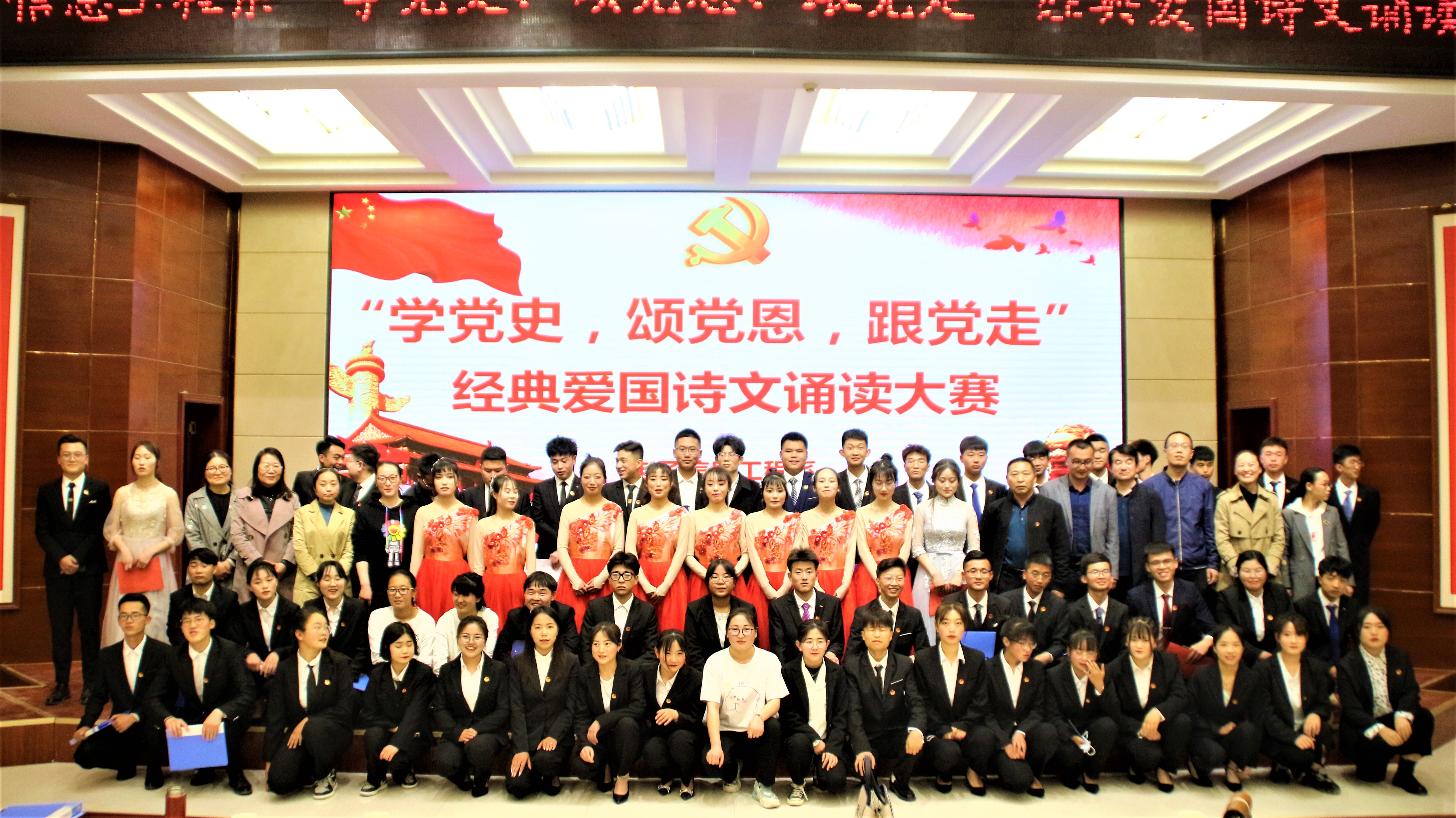 4月26日晚,電子信息工程系在大學生活動中心菁英廳舉辦“學黨史,頌黨恩,跟黨走”經(jīng)典愛國詩文誦讀大賽。全系教師及學生代表共計260人參加了此次活動。