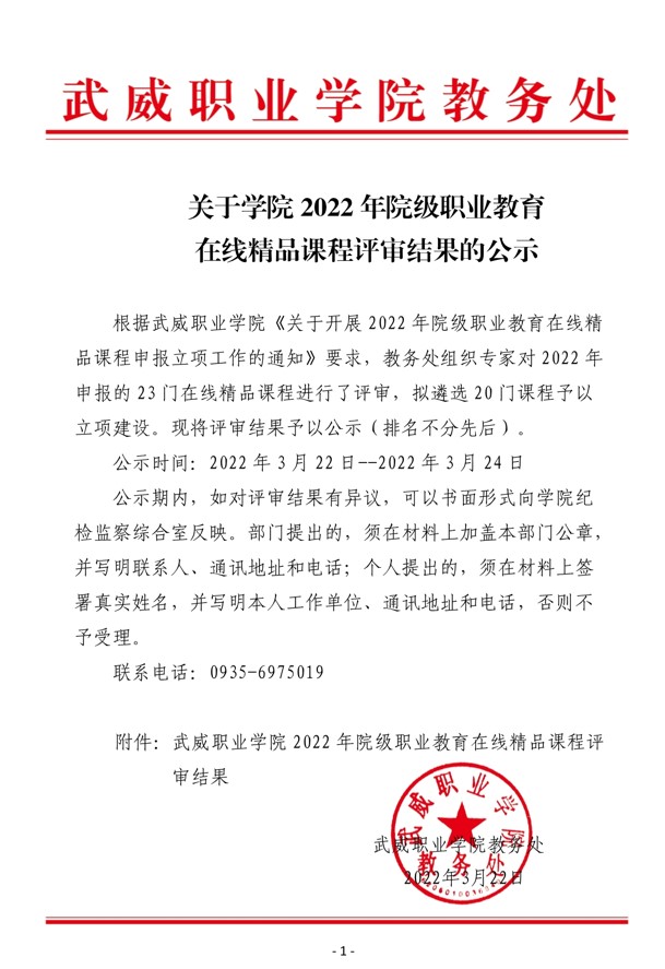 關(guān)于學(xué)院2022年院級(jí)職業(yè)教育在線精品課程評(píng)審結(jié)果的公示