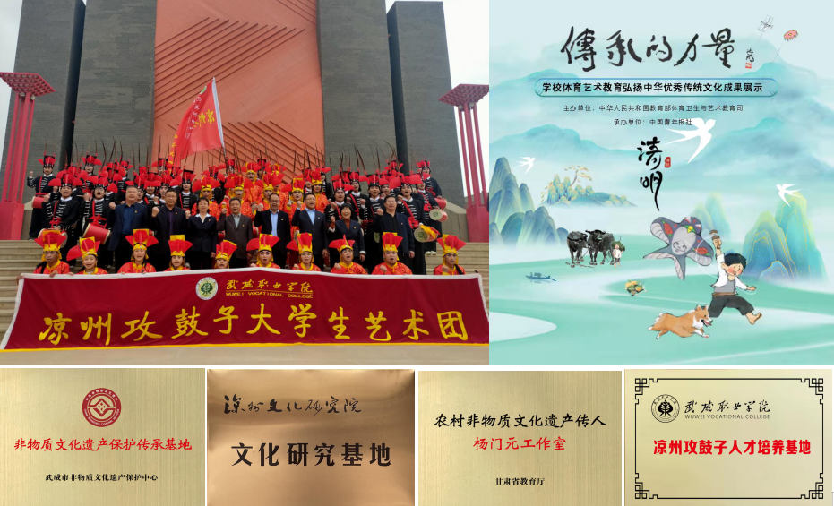 近年來(lái),學(xué)校全力推進(jìn)“雙高計(jì)劃”項(xiàng)目建設(shè),組織成立了武威職業(yè)學(xué)院涼州攻鼓子大學(xué)生藝術(shù)團(tuán),聘請(qǐng)國(guó)家級(jí)非遺代表性傳承人楊門元親傳技藝,并開(kāi)展了系列展演活動(dòng),著力打造特色校園文化品牌,助推文化繁榮、社會(huì)文明的新武威和華夏文明傳承創(chuàng)新區(qū)建設(shè),服務(wù)鄉(xiāng)村振興戰(zhàn)略。
