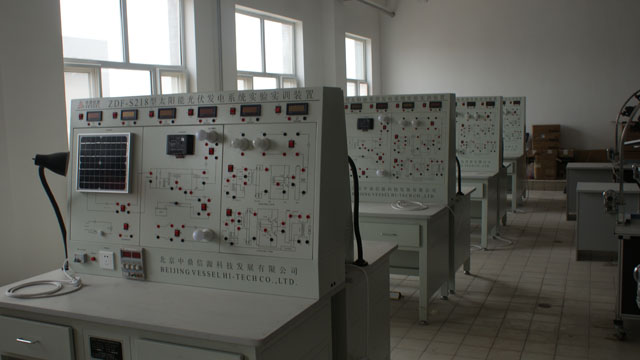 新能源實訓(xùn)中心建有光伏發(fā)電實訓(xùn)室和農(nóng)村能源實訓(xùn)室,可開設(shè)光伏發(fā)電模擬實訓(xùn)、光伏發(fā)電系統(tǒng)原理實訓(xùn)、風光互補發(fā)電實訓(xùn)、家用熱水器安裝實訓(xùn)、太陽能集熱管性能實訓(xùn)、太陽能輻射觀測、氣象數(shù)據(jù)測試、供配電技術(shù)實訓(xùn)、電力系統(tǒng)機電保護實訓(xùn)、沼氣發(fā)酵等實訓(xùn)項目,配有二十五臺計算機,可進行仿真模擬實驗與實訓(xùn),其中光伏發(fā)電實訓(xùn)平臺是由我院與湖北眾友科技實業(yè)股份有限公司共同開發(fā)研制,實訓(xùn)室設(shè)計理念先進、設(shè)施設(shè)備齊全,達到了省內(nèi)同類高職院校能源類專業(yè)的一流水平。