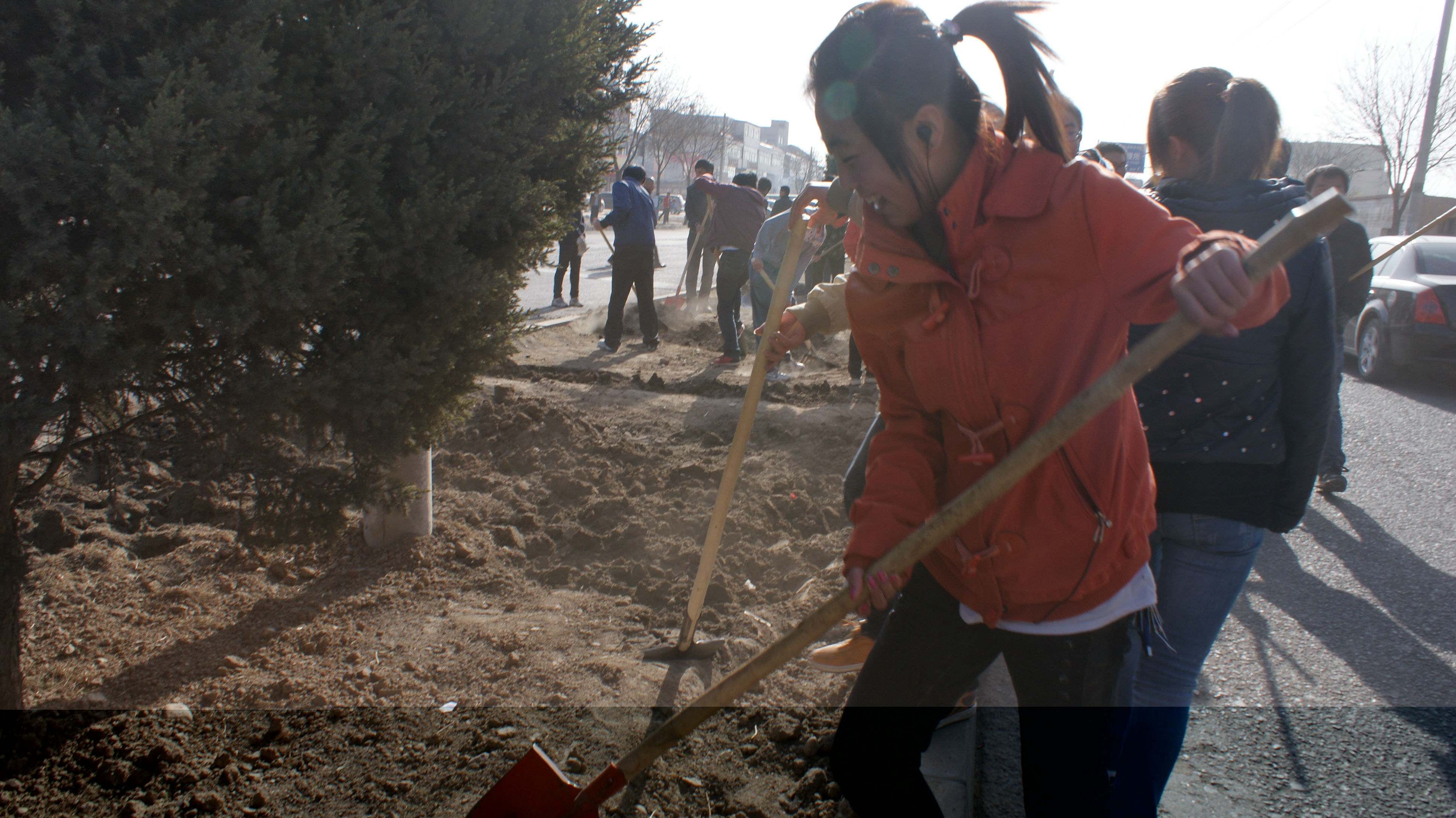大家早早的來到了目的地,很快投入了植樹和凈化街道的隊(duì)伍中。同學(xué)們井然有序,手持鐵鍬,一鍬一鍬的鏟土,一片一片的清理大街,干勁十足。同學(xué)們無(wú)一不閃爍著汗珠,露出幸福的笑容。