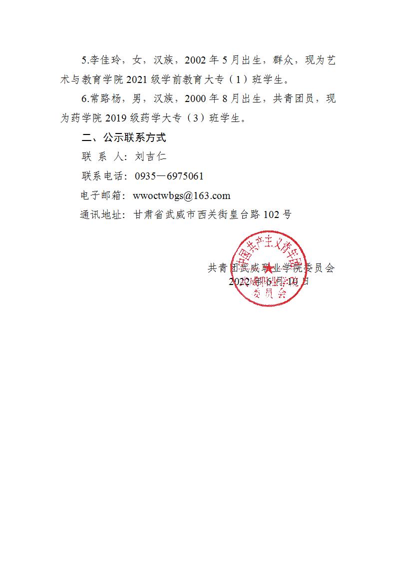 關(guān)于2022年“武威職業(yè)學(xué)院大學(xué)生自強之星”評選結(jié)果的公示