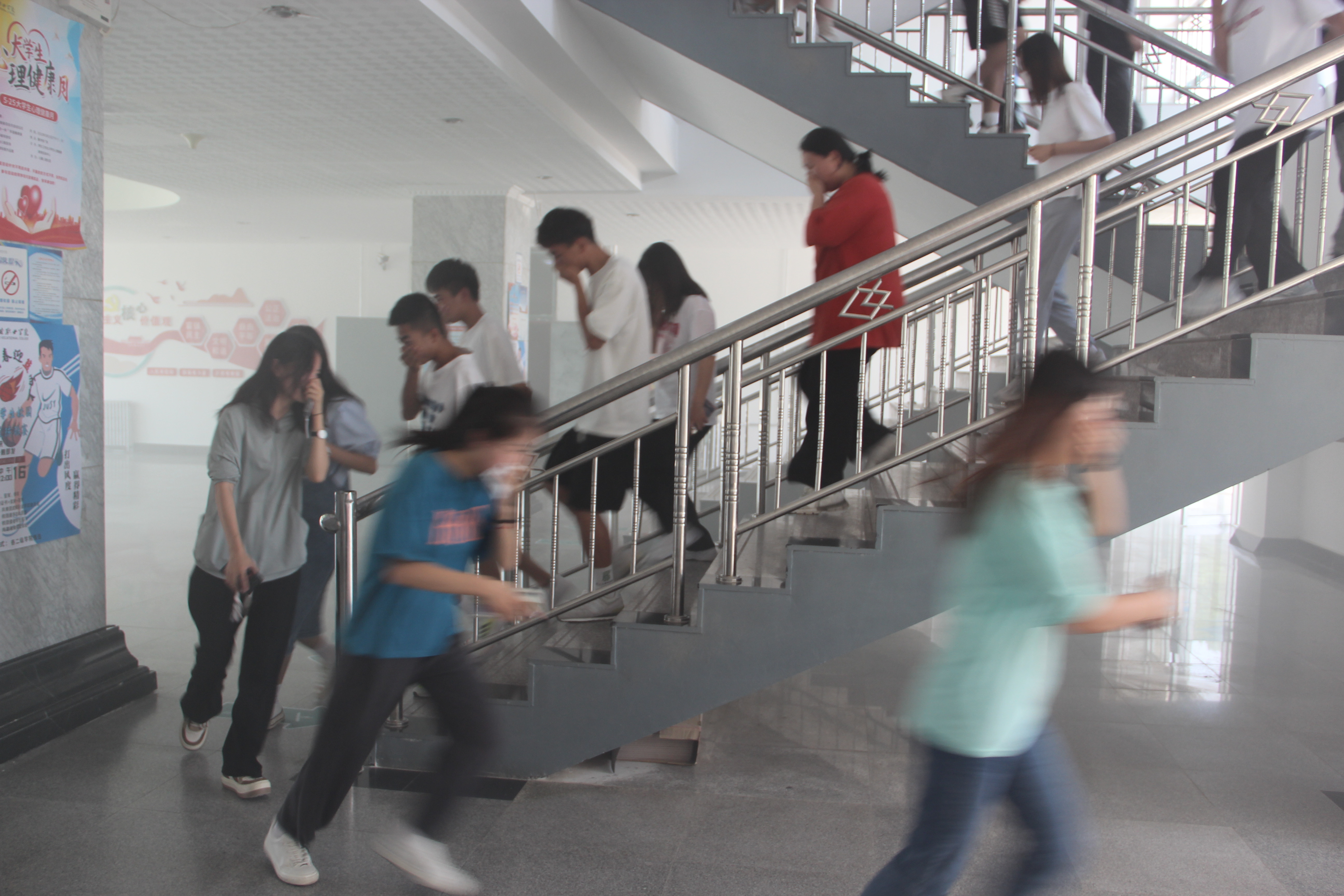 6月24日下午4點(diǎn)46分,學(xué)校應(yīng)急疏散演練正式開始。隨著消防警報(bào)響起,上課教師立即停止上課組織學(xué)生疏散,學(xué)生用毛巾捂住口鼻,在學(xué)工人員的指揮下,按照逃生路線迅速有序疏散。在5分鐘內(nèi),8000多名師生全部按指要求撤離到指定區(qū)域集合,演練取得圓滿成功。