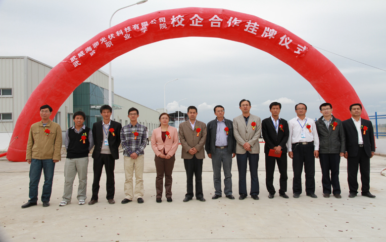2012年9月24日下午,在武威新能源裝備制造基地海潤光伏科技有限責任公司,隆重舉行武威職業(yè)學院與武威海潤光伏科技有限責任公司校企合作掛牌儀式。出席本次活動的領導有學院副院長王宏、副院長翟存祥、武威新能源裝備制造產業(yè)園區(qū)管委會主任助理胡巍、武威海潤光伏科技有限責任公司總經理談進、學院招生就業(yè)處副處長李亞梅。能源工程系師生代表、園區(qū)管委會、海潤光伏科技有限責任公司相關人員共計60余人參加了活動。