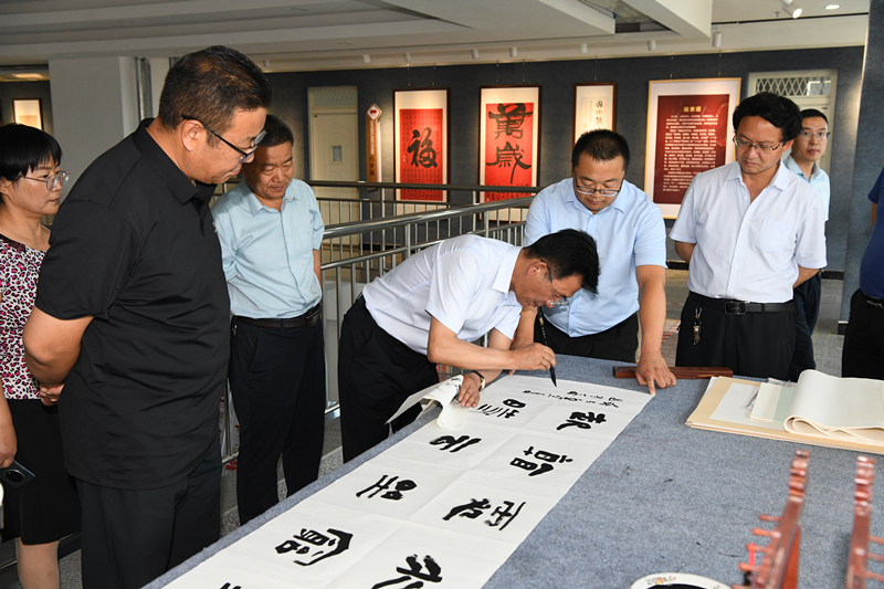 趙明在致辭中向市文旅局、市書畫院及齊澤山先生長期以來對學(xué)校改革發(fā)展給予的關(guān)心和支持表示衷心的感謝。他表示,齊澤山先生為學(xué)校捐贈的書法作品為整個校園人文景觀和文化環(huán)境增添了濃墨重彩的一筆,促進了樓宇文化建設(shè)。學(xué)校將珍惜并運用好這些優(yōu)質(zhì)文化資源,發(fā)揮好藝術(shù)作品的審美功能、教育功能,用藝術(shù)熏陶和精神洗禮進一步激勵廣大師生。