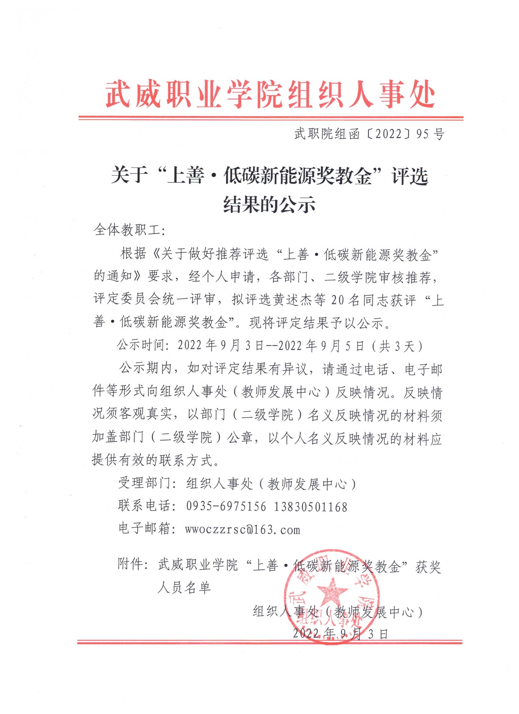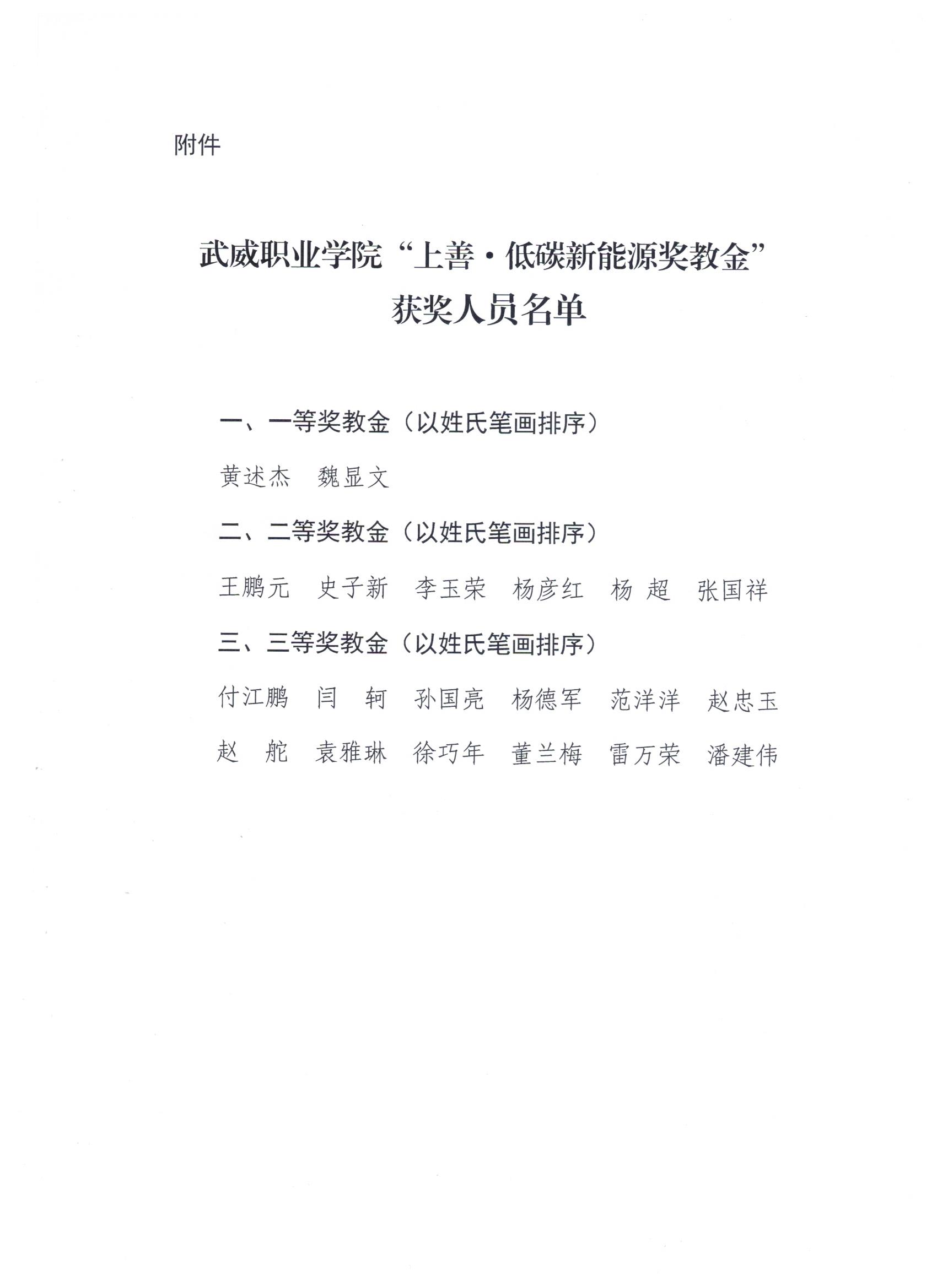 關于“上善·低碳新能源獎教金”評選結果的公示
