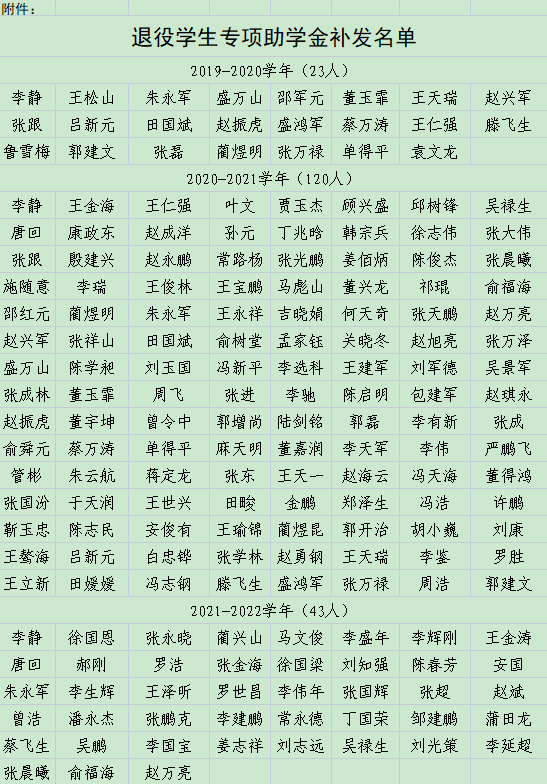 關(guān)于補(bǔ)發(fā)退役學(xué)生專(zhuān)項(xiàng)助學(xué)金的公示