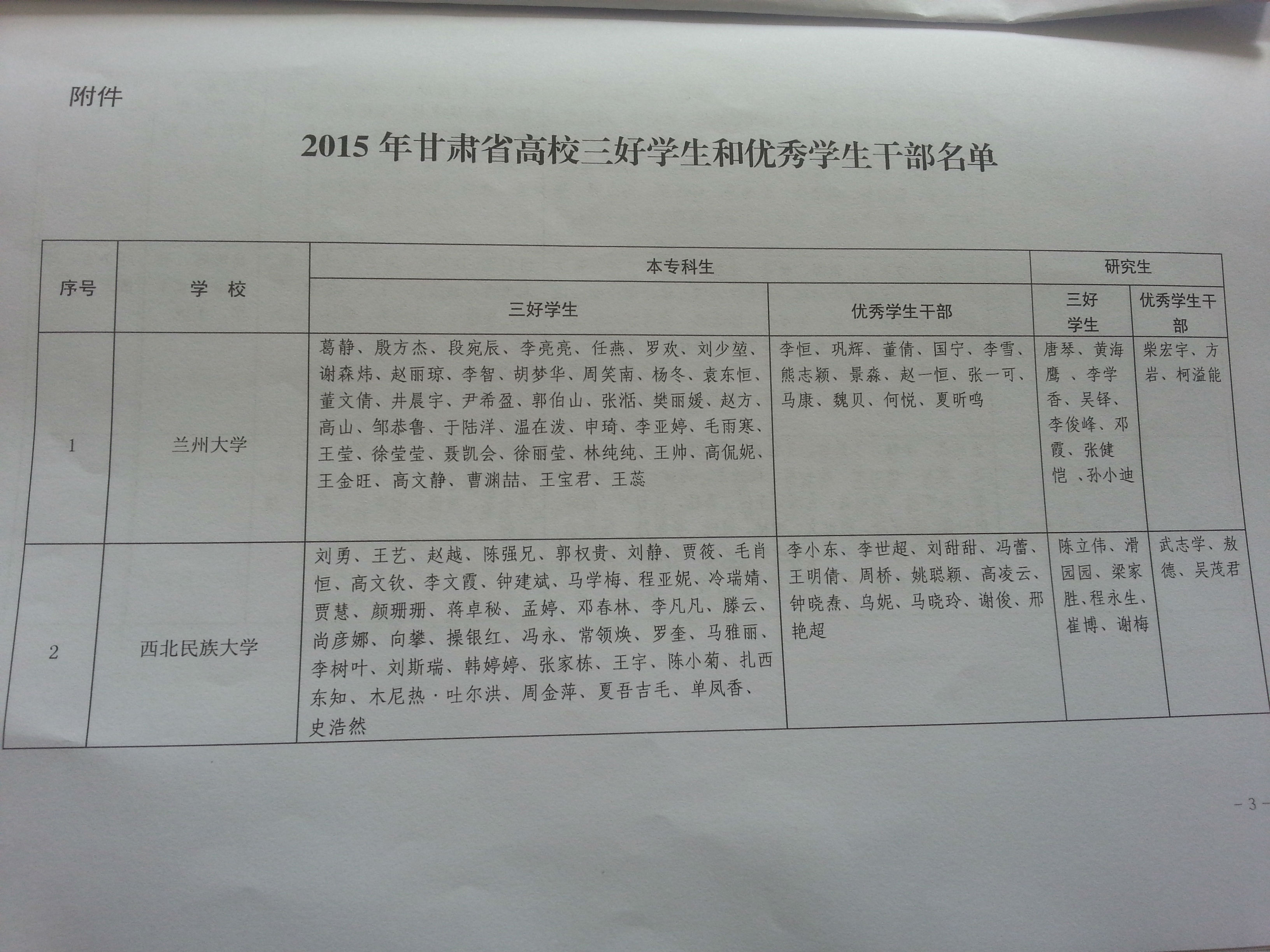 甘肅省教育廳關(guān)于表彰2015年甘肅省高校“三好學(xué)生”和“優(yōu)秀學(xué)生干部”的決定