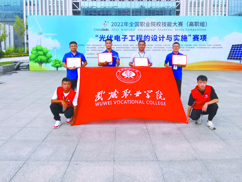 武威職業(yè)學(xué)院的學(xué)生在2022年全國(guó)職業(yè)院校技能大賽高職組光伏電子工程的設(shè)計(jì)與實(shí)施賽項(xiàng)中榮獲團(tuán)體一等獎(jiǎng)。(武威職業(yè)學(xué)院供圖)