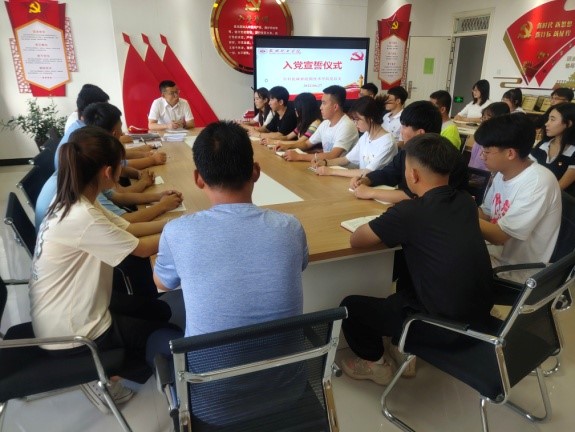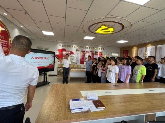 在“七一”來臨之際,為加強黨員教育、增強黨性觀念,中科低碳新能源技術(shù)學院黨總支于2022年6月27日下午在能源樓六樓黨員活動室組織開展了新黨員入黨宣誓儀式。學院黨總支全體黨員以及師生預備黨員參加宣誓儀式。