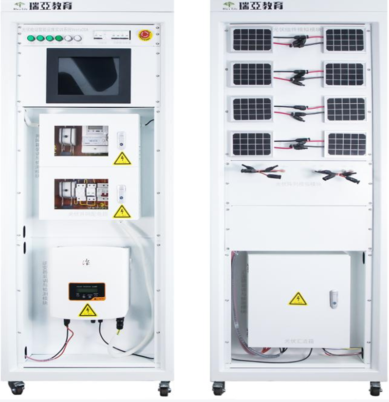 光伏電站智能運(yùn)維實(shí)訓(xùn)平臺(tái)主要有光伏組件模塊、光伏陣列模塊、匯流箱裝調(diào)與檢測(cè)模塊、逆變器裝調(diào)與檢測(cè)模塊、并網(wǎng)箱裝調(diào)與檢測(cè)模塊、運(yùn)維采集模塊組成。